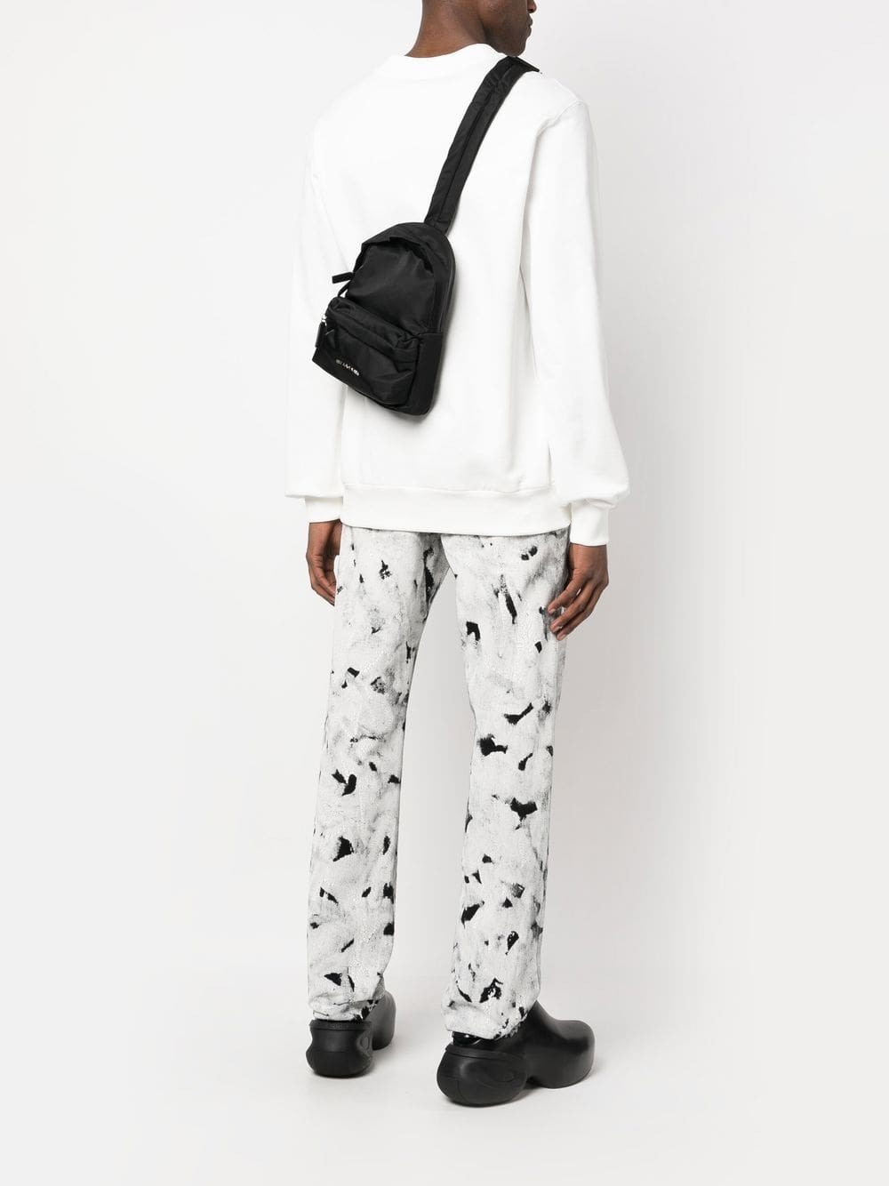 jet black calf leather logo print to the front logo-buckle detail all-around zip fastening front zip-fastening pocket single shoulder strap