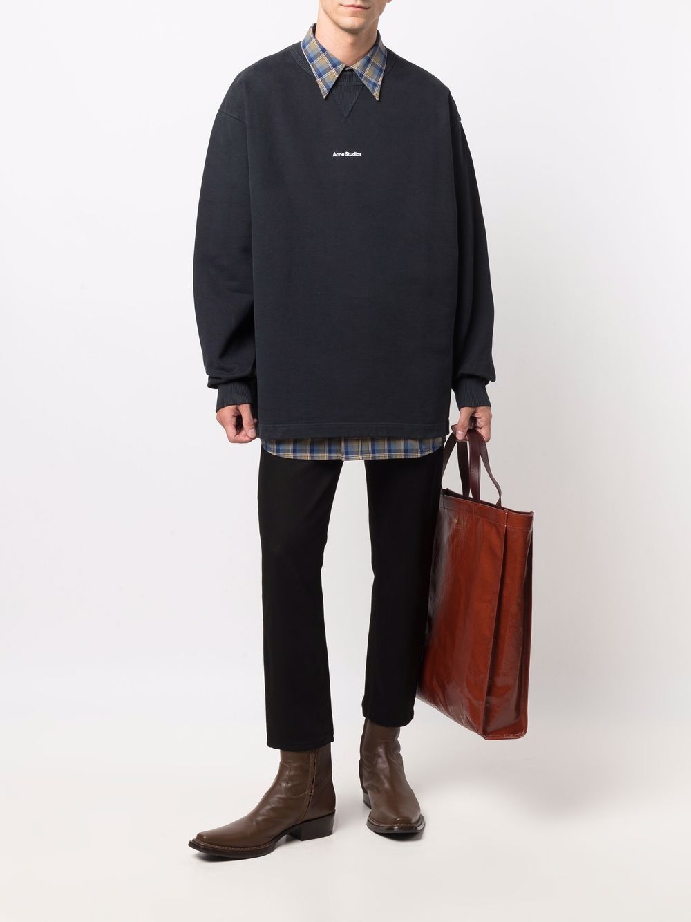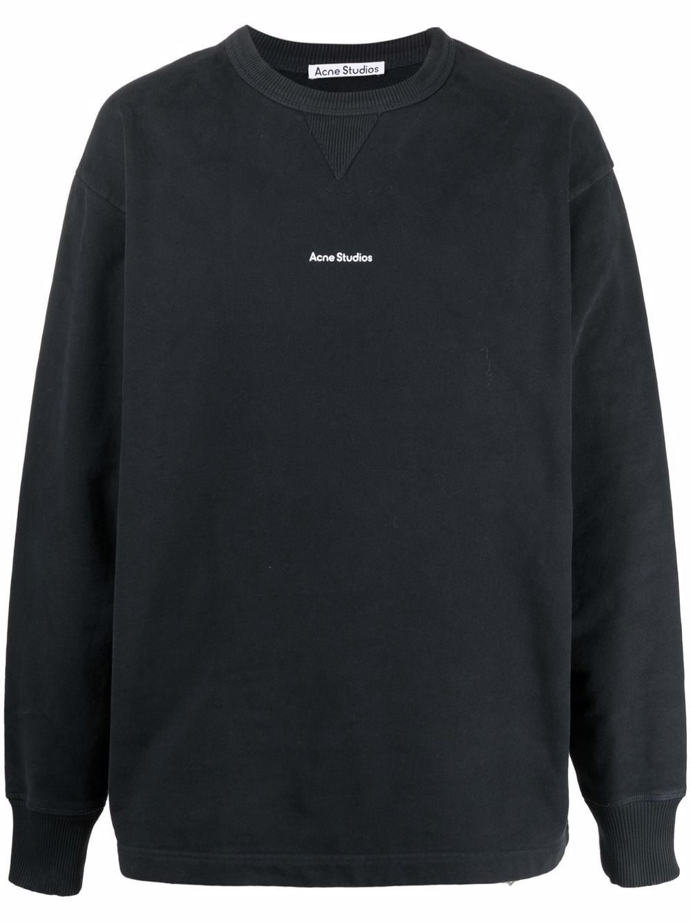 black organic cotton logo print at the chest crew neck drop shoulder long sleeves ribbed edge POSITIVELY CONSCIOUS: This Planet Conscious product is made from at least 50% organic materials, which helps you support organic farming practices such as the restricted use of synthetic chemicals and genetically modified seeds, improved soil fertility and better livestock management.