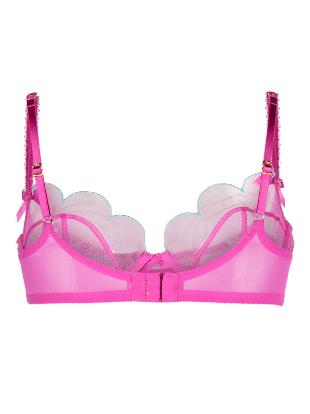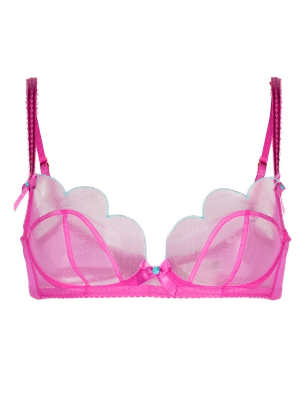 Known for its irreverent approach to lingerie and beachwear, Agent Provocateur brings the Lorna bra. Crafted in hot pink, this underwear piece is filled with delicate, yet striking details: there are three bows that create a balance between the sheer details that frame the underwire cup.
