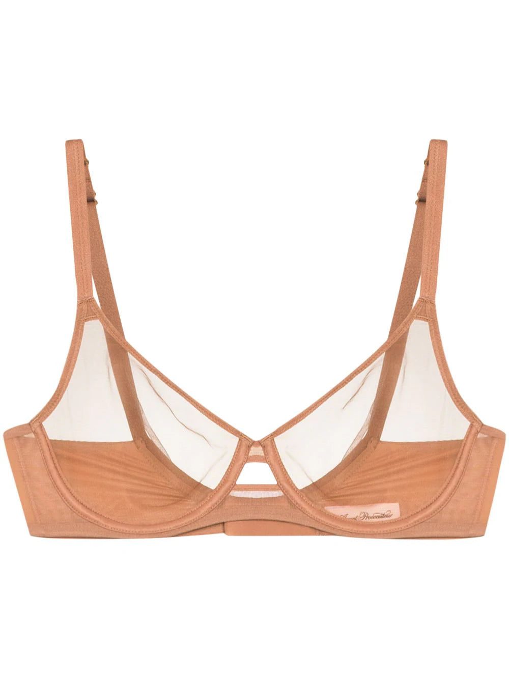 Agent Provocateur provides all day comfort and ease with their Lucky mesh bra. Support is given thanks to a wire construction, whilst stretch mesh and brushed microfibre panels make for a cosy fit.