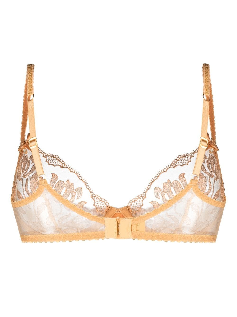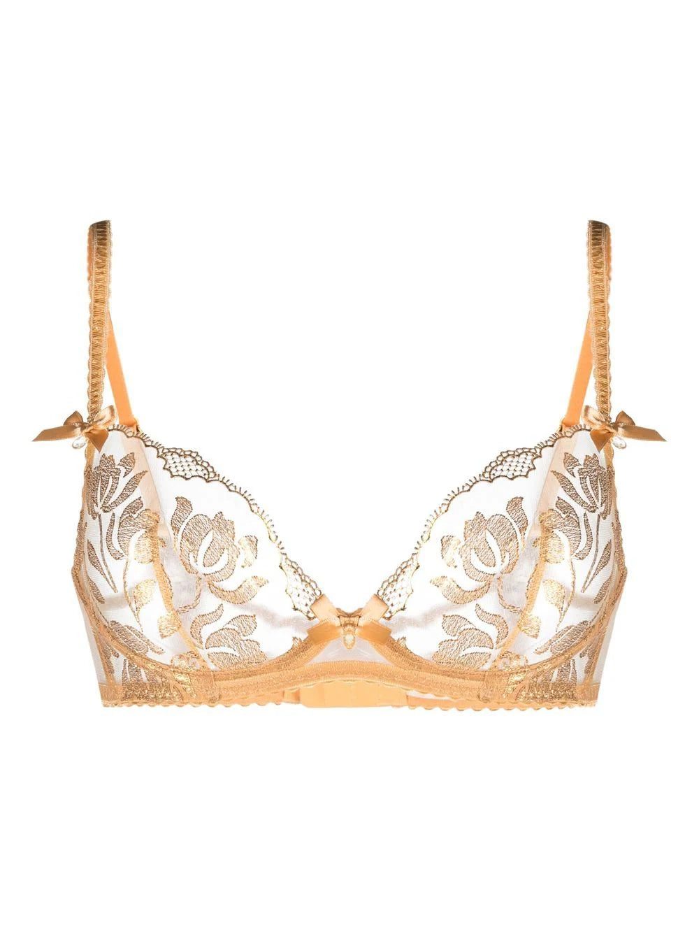 gold-tone floral-lace detailing sheer underwire cup plunge style rear hook and eye fastening adjustable shoulder straps Just a reminder that this piece must be tried on over your own garments.