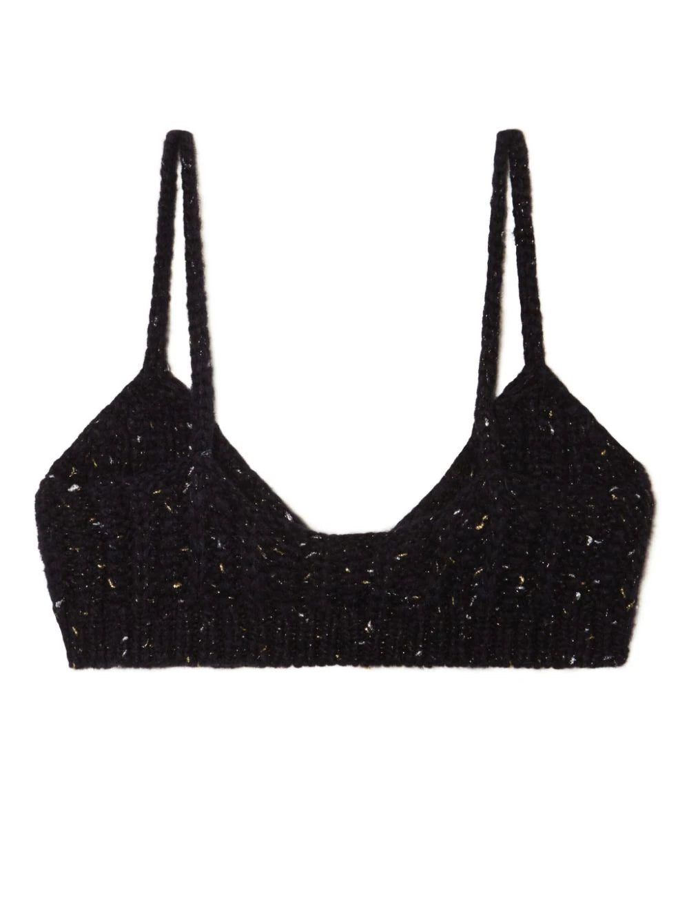 Alanui's propensity for creativity and fine craftsmanship is articulated in the design of this Astral bra. It’s spun with metallic threads that’s intended to evoke the look of stardust atop the midnight-blue base.