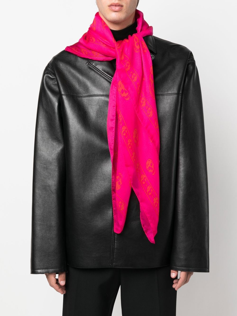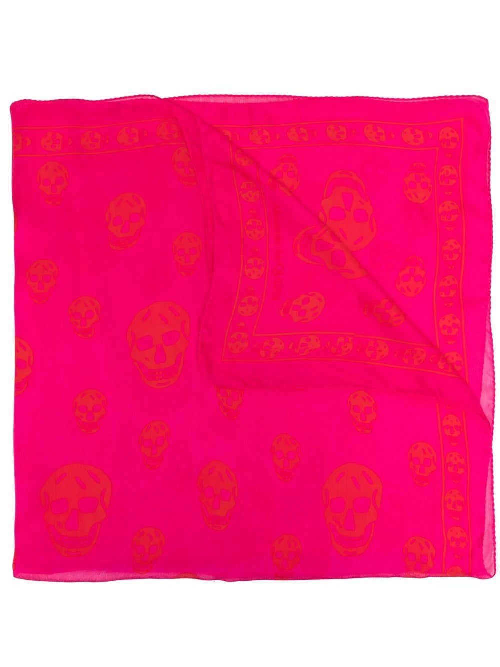 all-over skull-print scarf from Alexander McQueen featuring fuchsia pink, red, silk, two-tone design, skull print to the front and finished edge.
