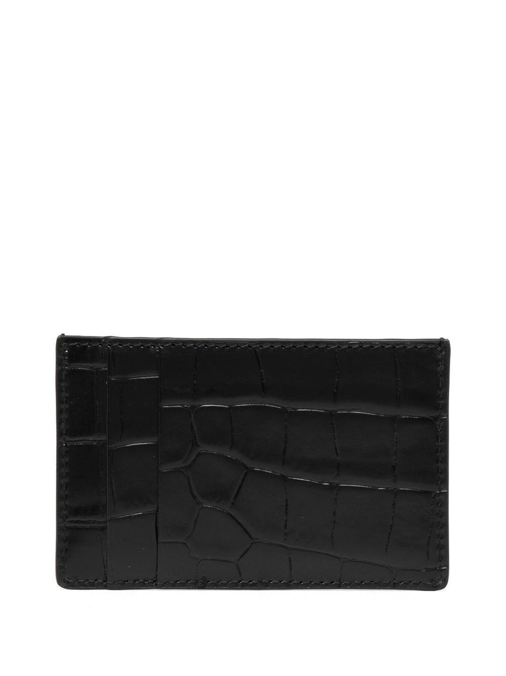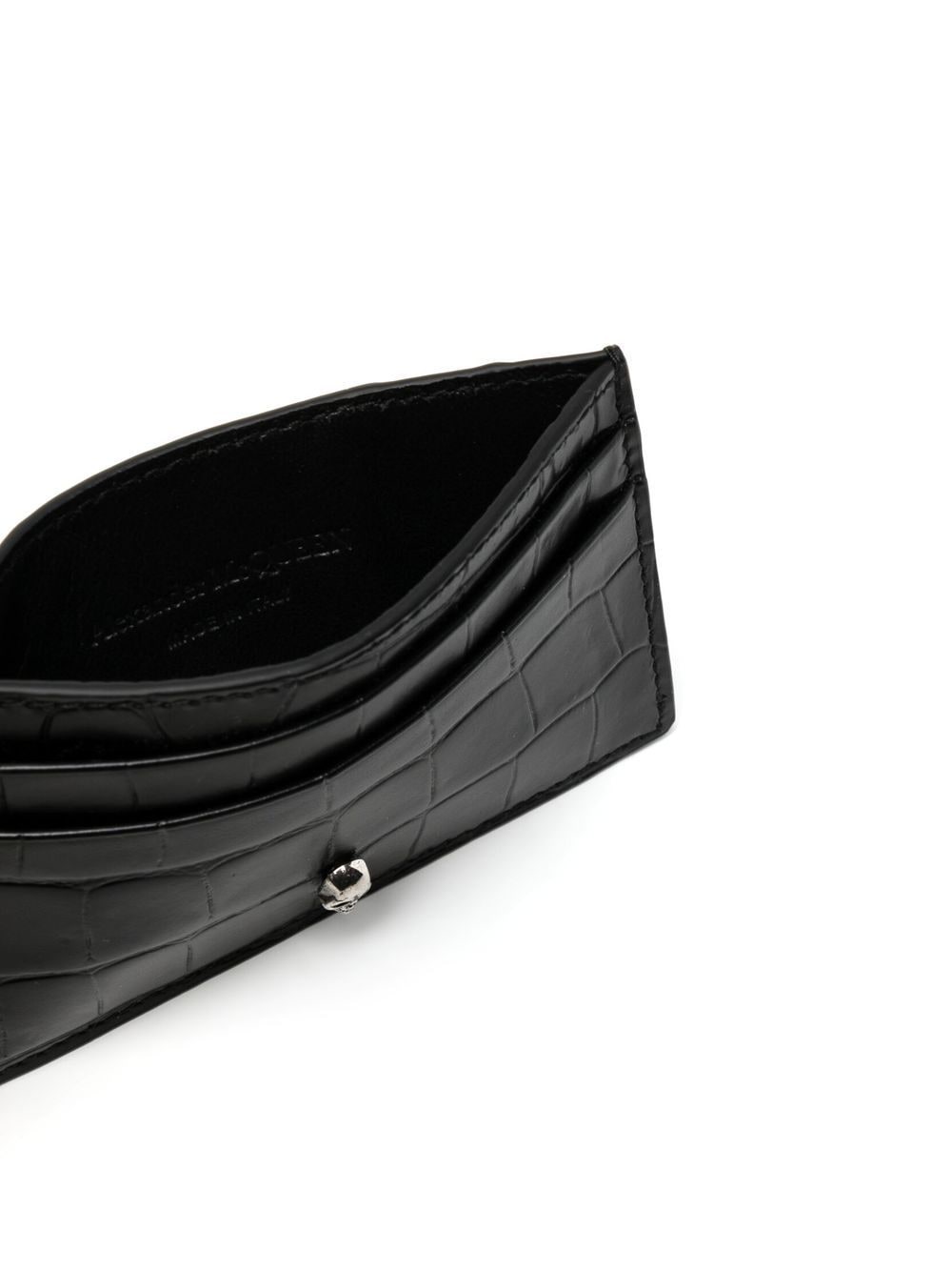 Never one to follow convention, Alexander McQueen possesses a dark yet alluring aesthetic. The brand aims to ‘define beauty in the grotesque’ with skull motifs and gothic-inspired detailing. This black leather crocodile-embossed cardholder from Alexander McQueen features multiple interior card slots and a silver-tone skull embellishment.