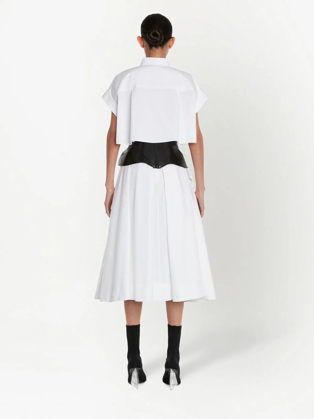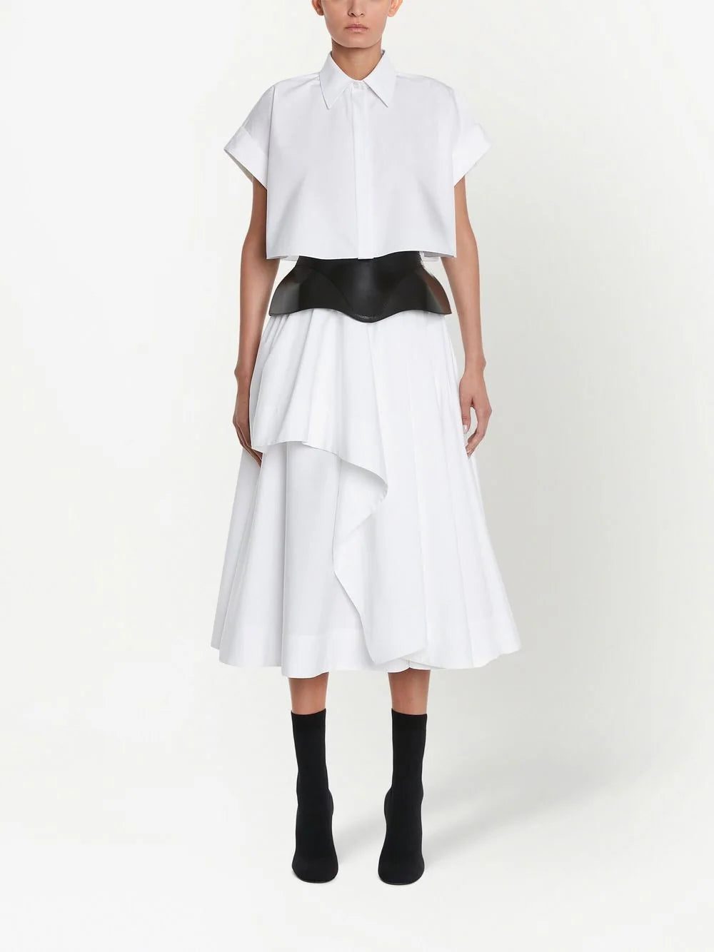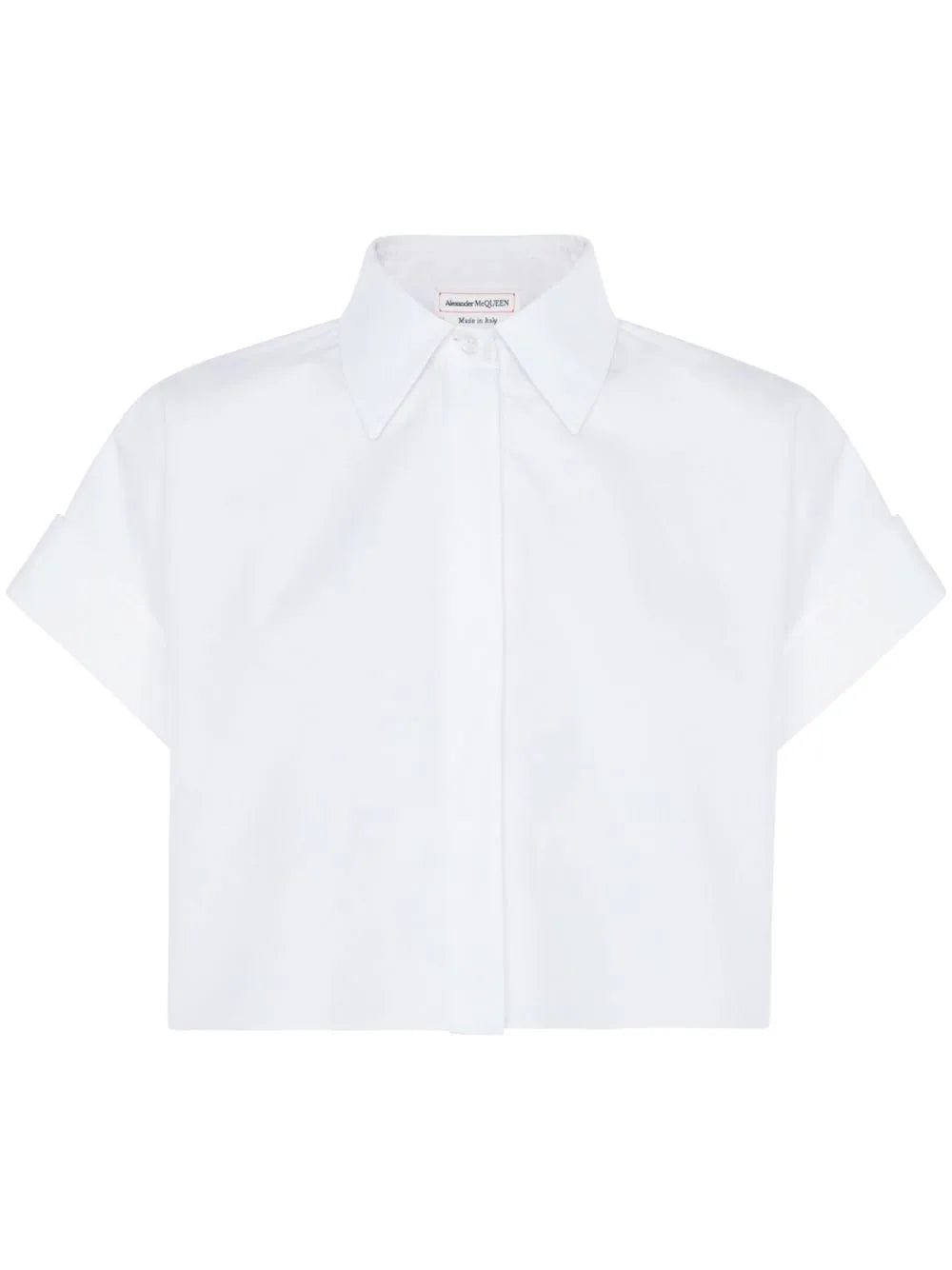 cropped short-sleeved shirt from Alexander McQueen featuring cloud white, classic collar, front button fastening, short sleeves, cropped and cotton.