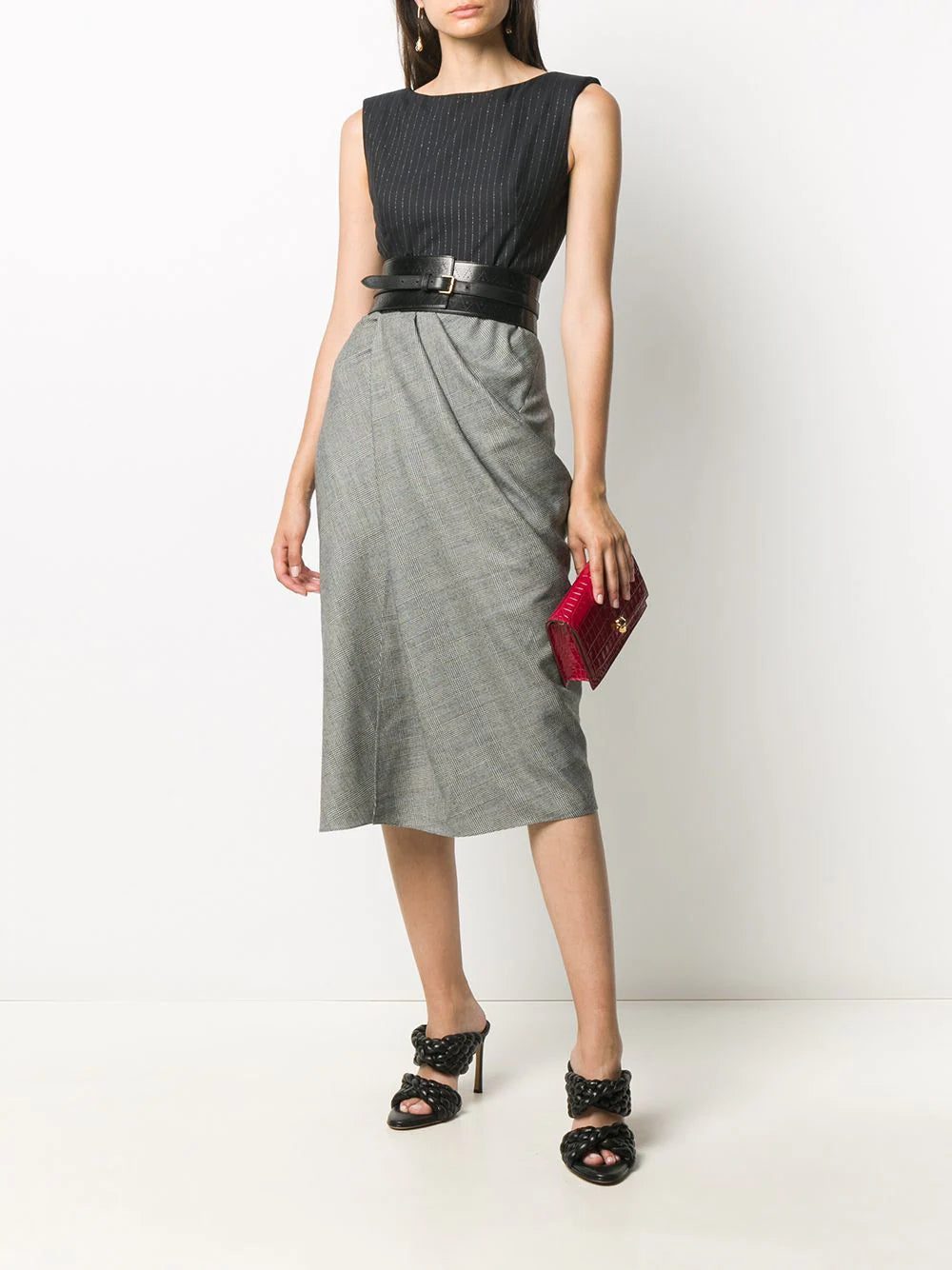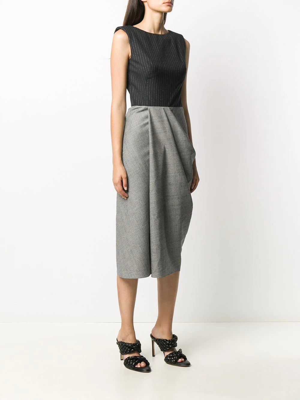 Dress to impress. Boasting a pinstripe and check print, this midi dress from Alexander McQueen will surely make heads turn. Will you give it a go?