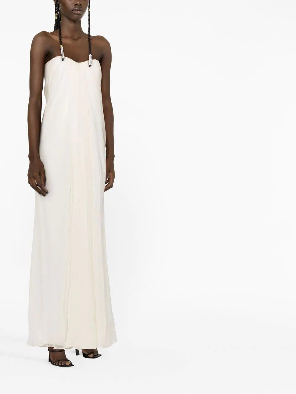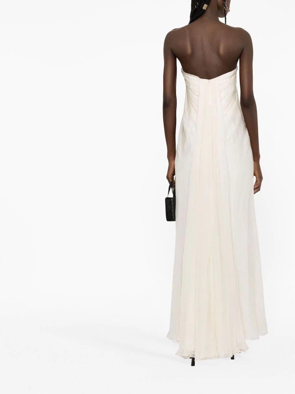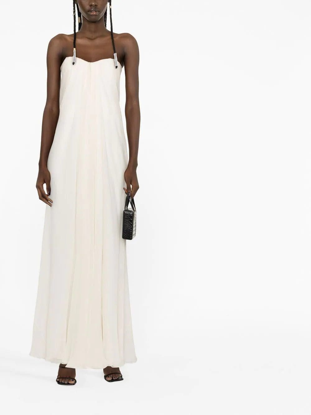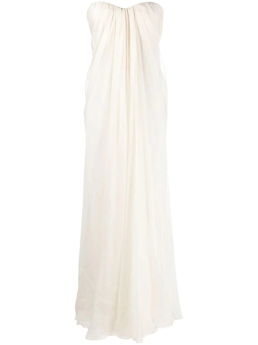 Offering a minimalist aesthetic, this dress from Alexander McQueen is rendered in a fresh white hue. The netural colour allows the voluminous silhouette to take centre stage.