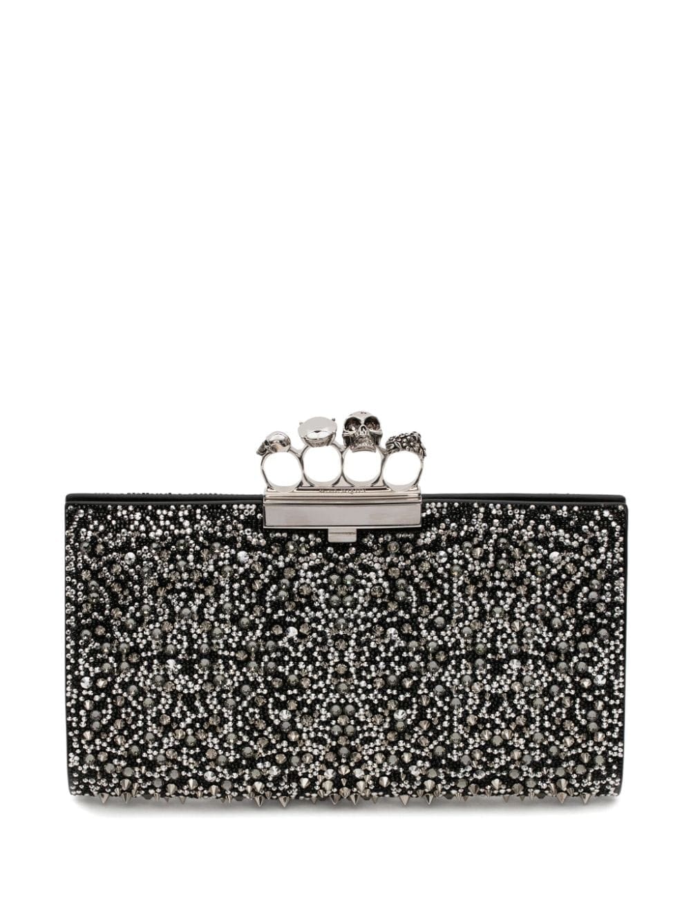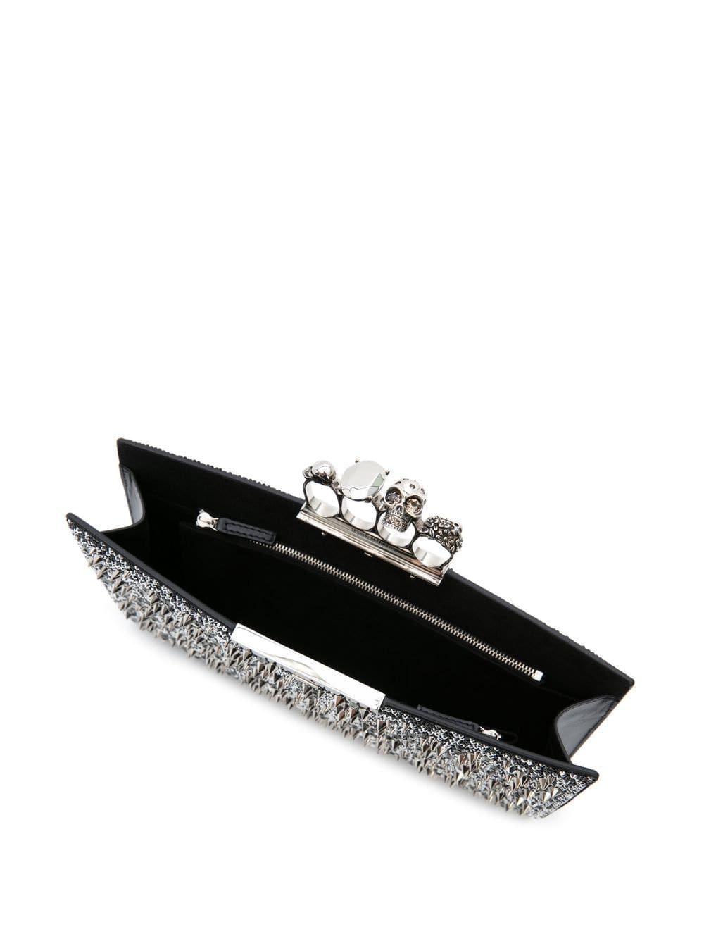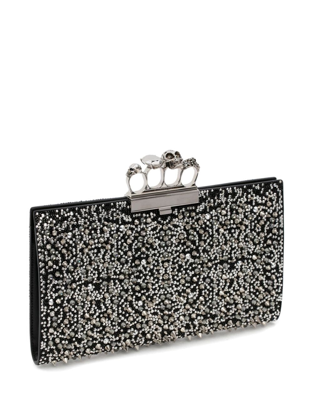 black/silver leather blend glass crystal embellishment knuckleduster design skull stud embellishment main compartment