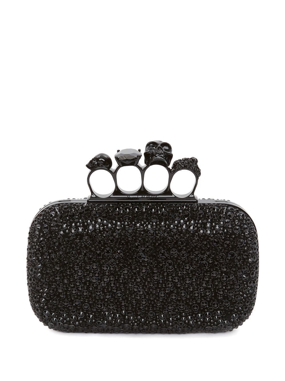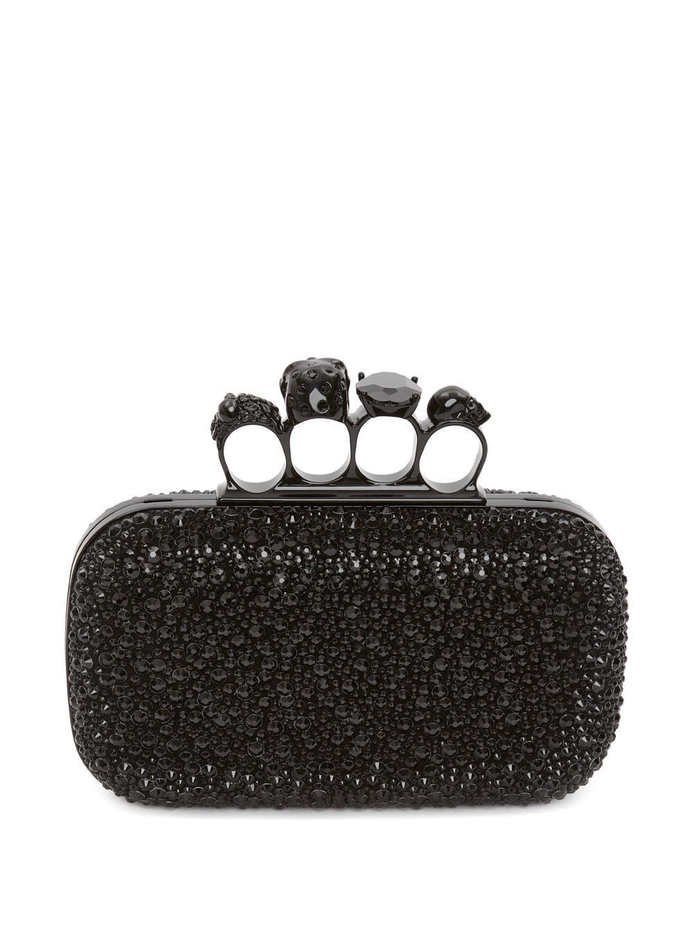black calf leather skull stud embellishment detachable chain-link shoulder strap signature Four Ring handle top clasp fastening main compartment