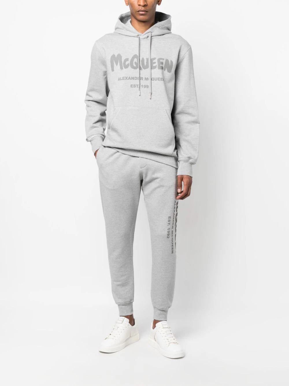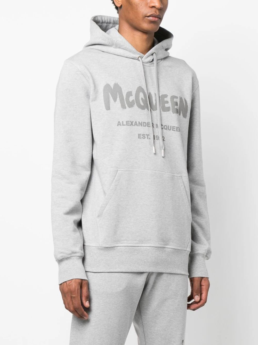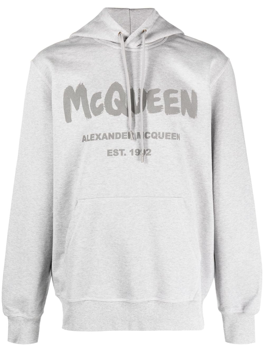 A signature motif for the house, the Graffiti print taps into Alexander McQueen's streetwear-inspired take on garments. It adorns this heather grey hoodie, made in Italy from soft cotton.