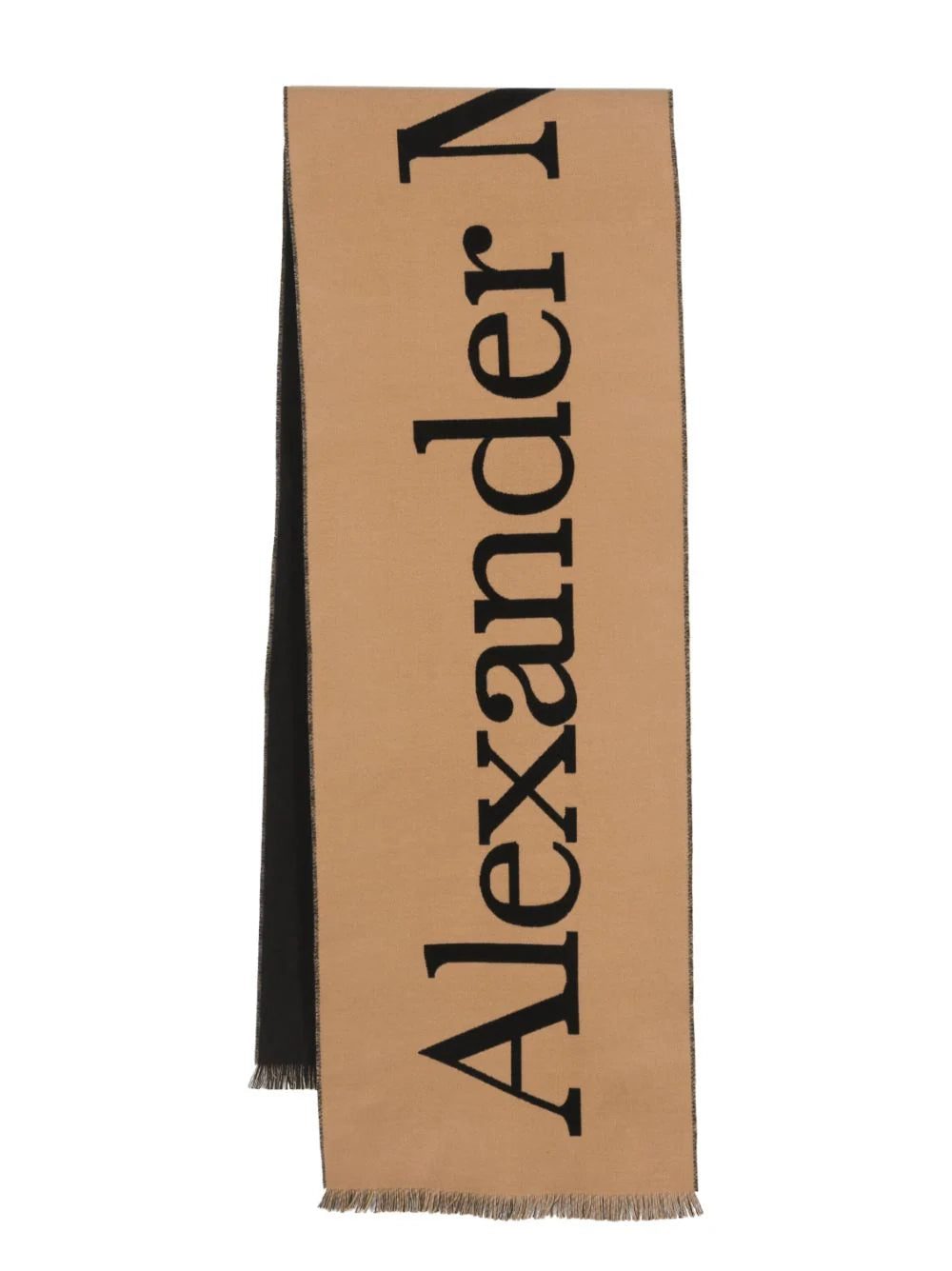 Tying in with current branding trends, this scarf from Alexander McQueen features a large intarsia-knit logo along the design. In a two-tone palette, the accessory has a refined and timeless feel.