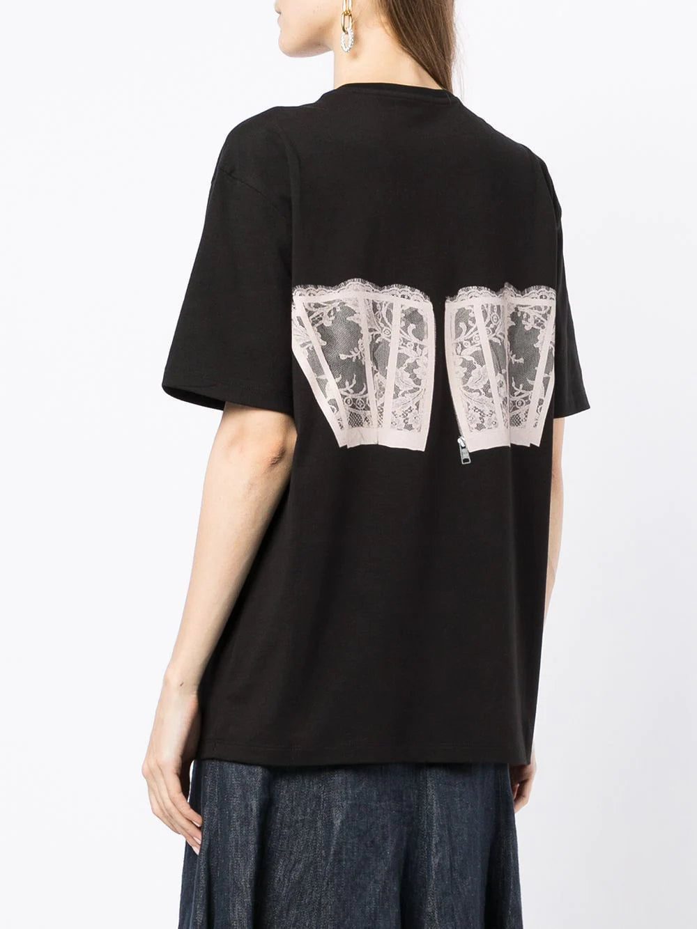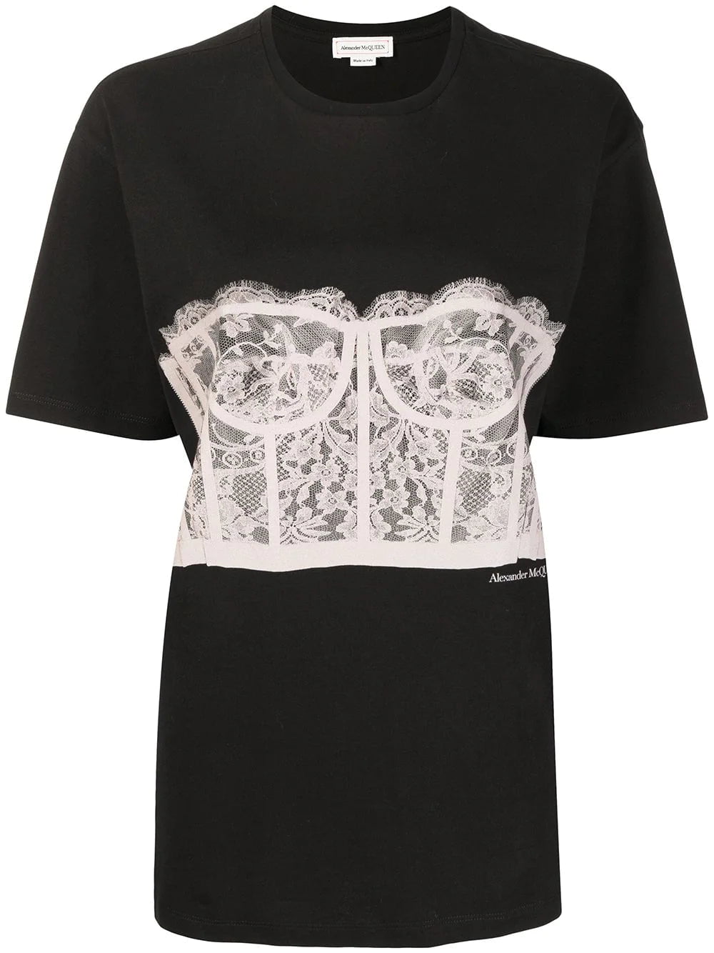 Offering a nod to the extraordinary lacework of Alexander McQueen's archival gowns, this cotton T-shirt features a lace corset print on a soft cotton construction.