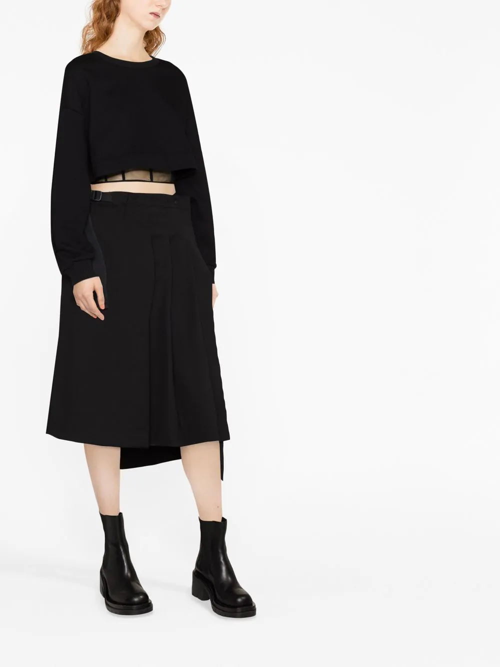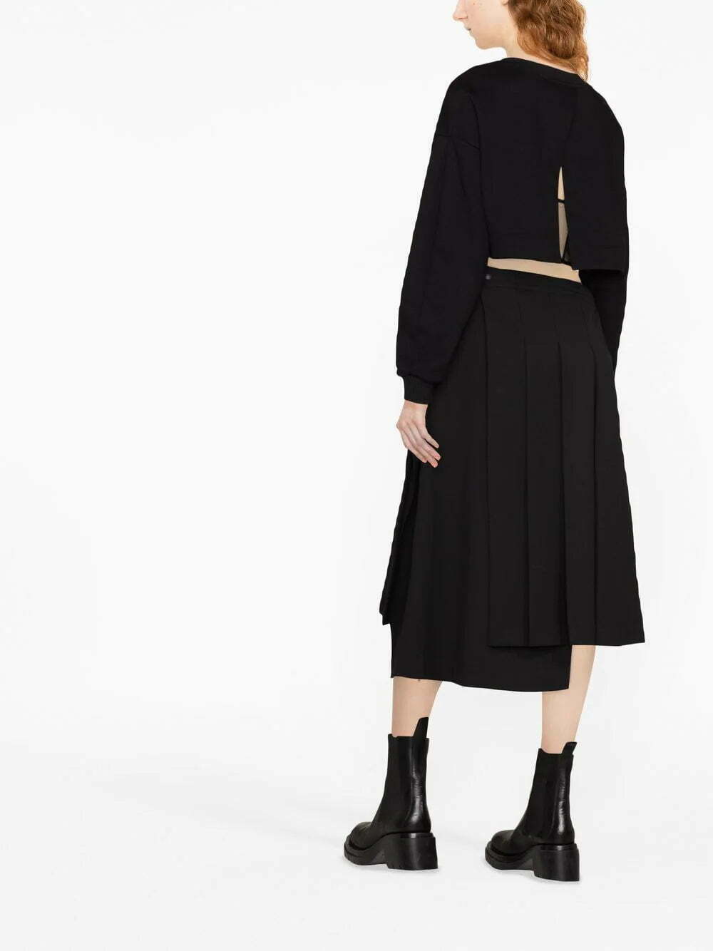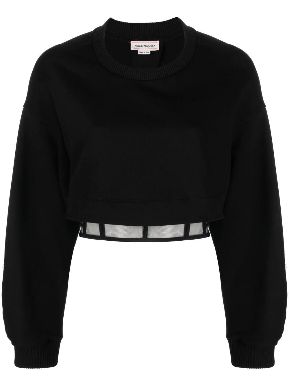 Alexander McQueen lends the sporty sweatshirt a signature punk style, adding a panelled mesh underlayer to the cotton top. The back is open with a rear slit for an extra unexpected touch.