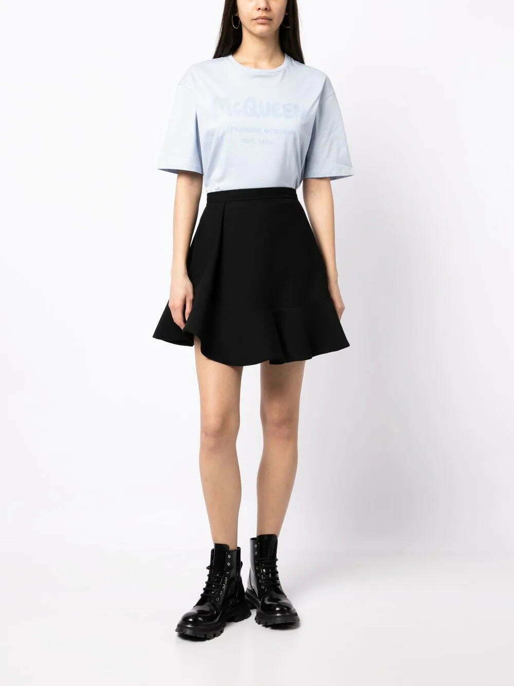 logo-print cotton t-shirt from Alexander McQueen featuring baby blue, cotton, signature Graffiti print, logo print at the chest, crew neck, short sleeves and straight hem.