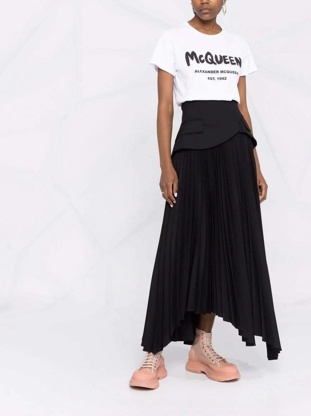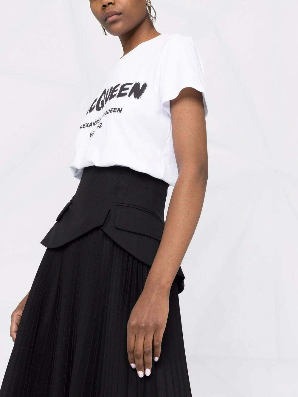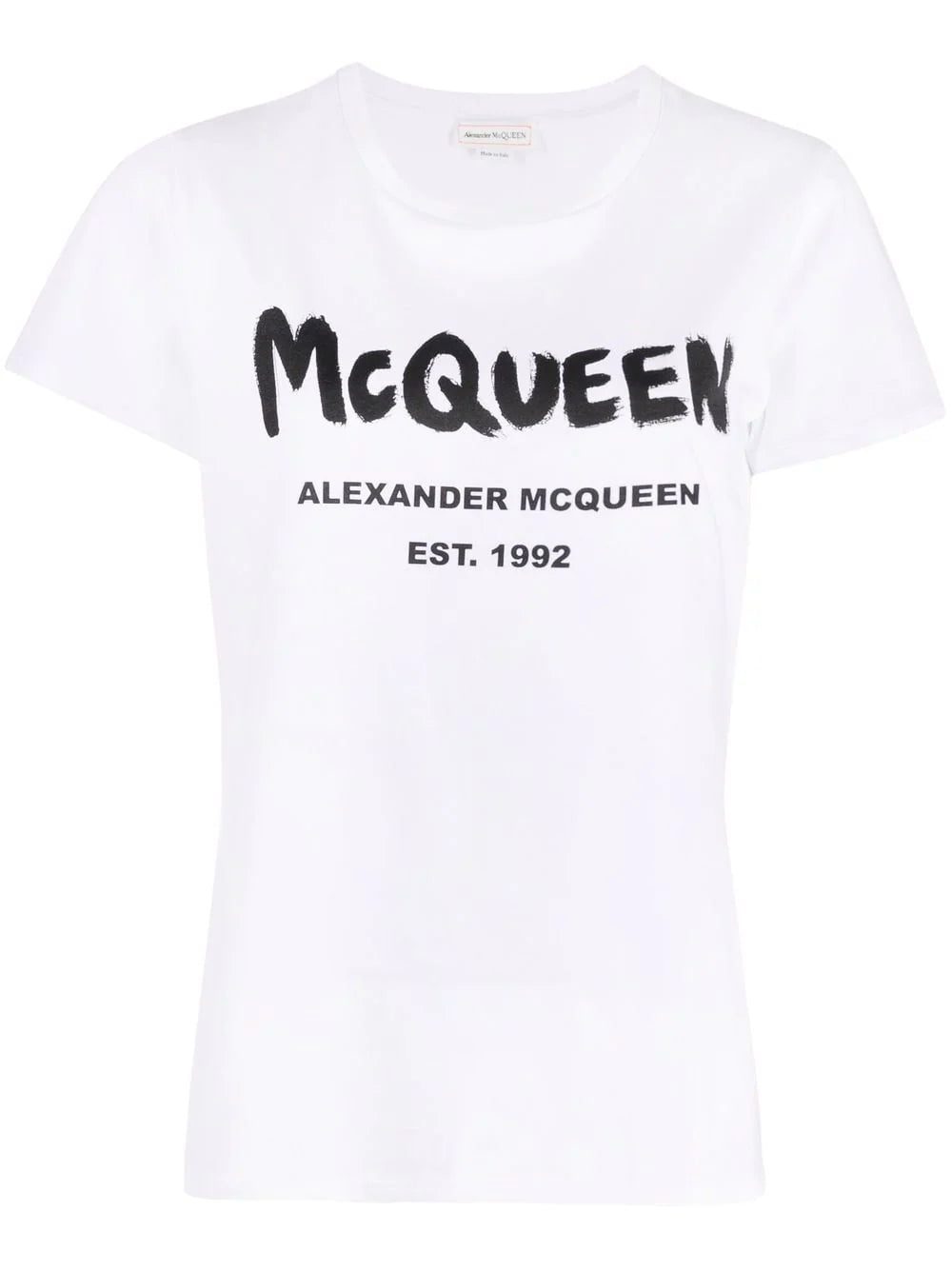 Alexander McQueen brings its artistic flair to this white cotton T-shirt. This casual top is detailed with a brushstroke-style logo print to the front and the year of the label's launch: 1992.