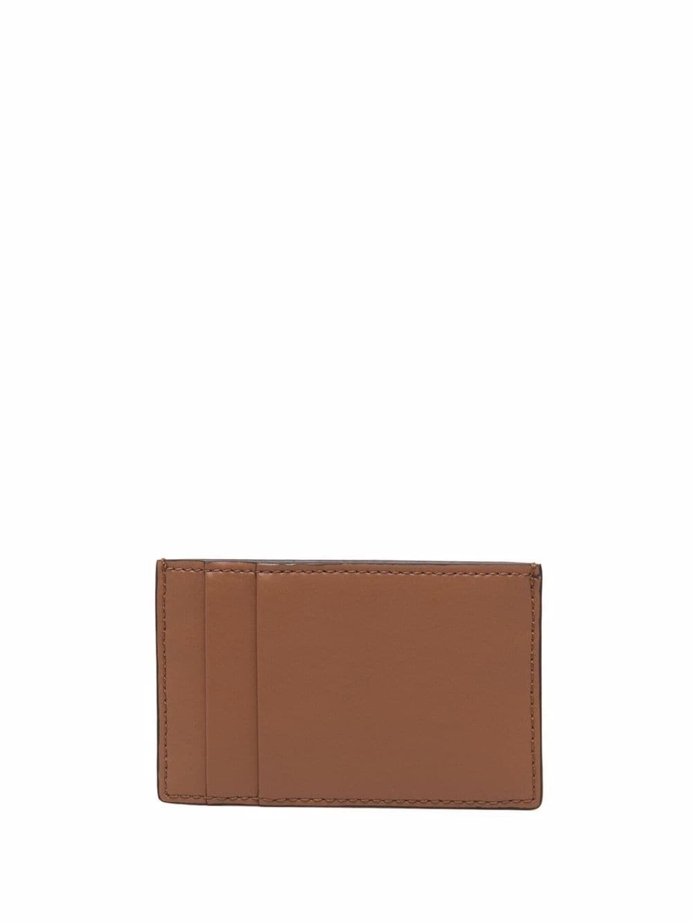 cedar/dark brown leather logo print to the front rectangle shape card slots