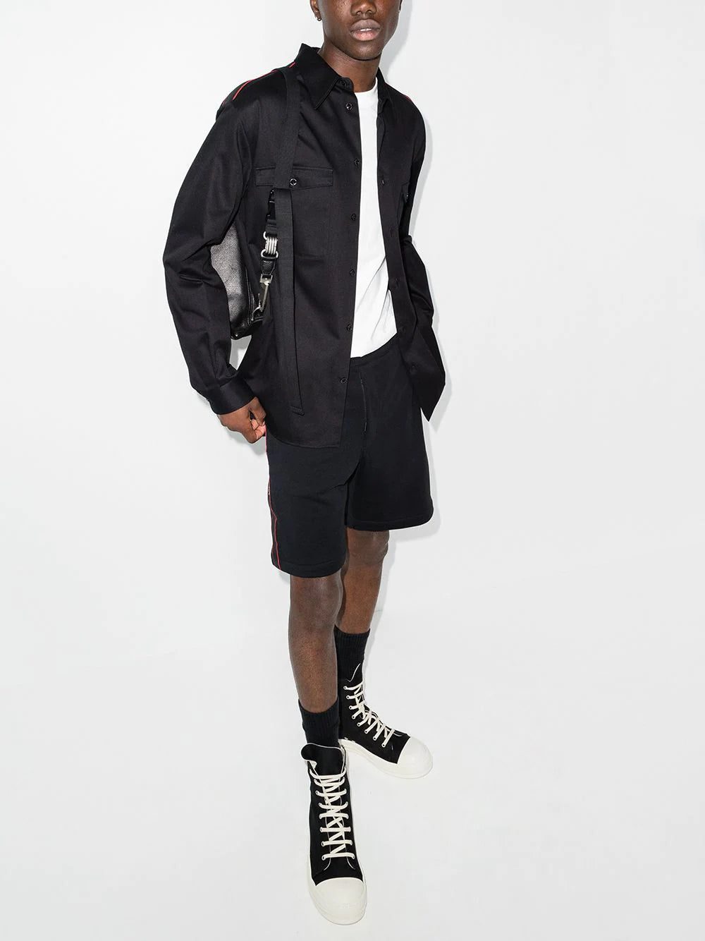 Adorned with the brand's signature logo tape, these track shorts from Alexander McQueen are crafted from soft cotton and cut for a knee-length. With an elasticated waistband, they add a sportswear feel to the label's gothic and theatrical aesthetic.