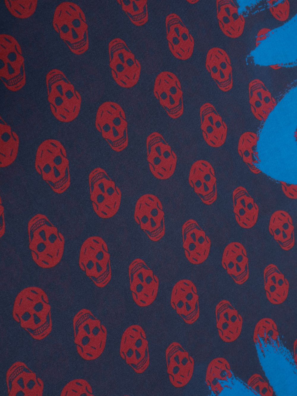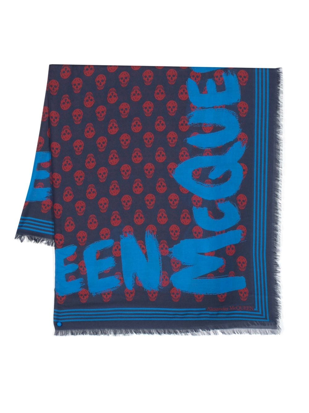 Injected with a punk sensibility reflecting the house's aesthetic, this two-tone modal scarf reinterprets the brand's iconic skull-print foulards, overlapping the cadaveric motif with the signature Graffiti logo stamp. Fraying along the edge rounds it out.