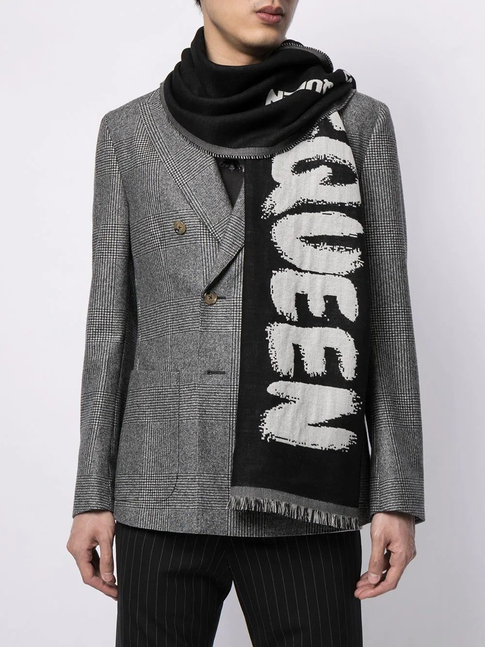 Cover yourself in style. And by that, we mean, with this oversize graffiti scarf from Alexander McQueen. Just perfect no matter the weather.