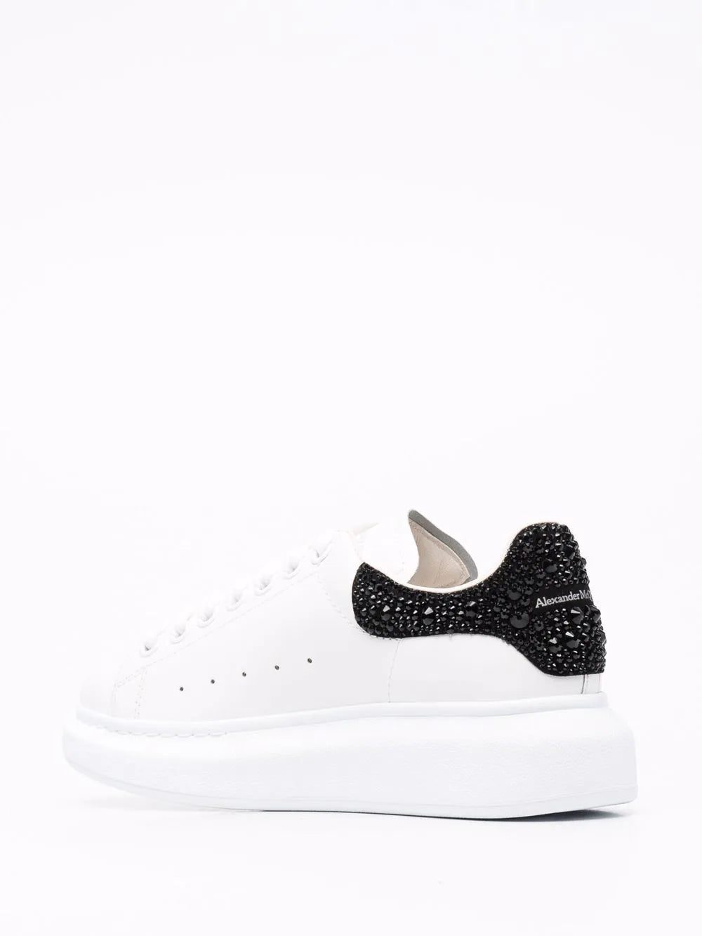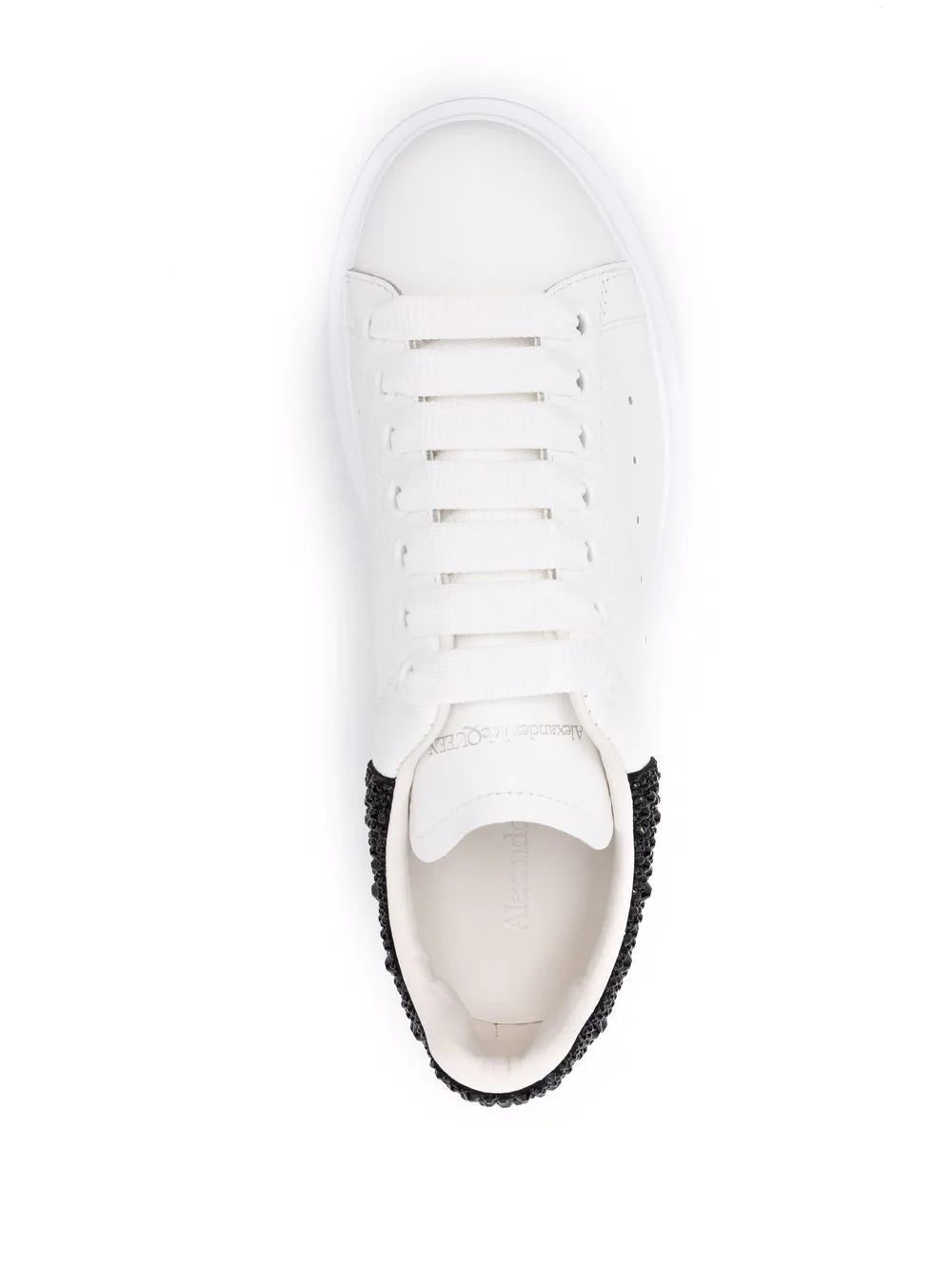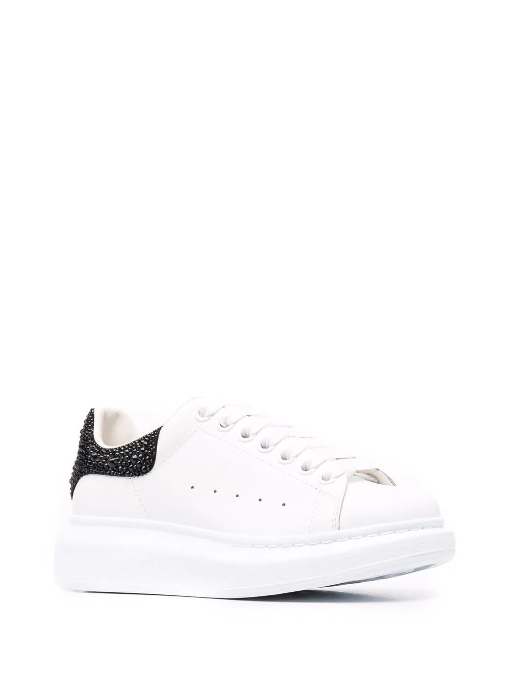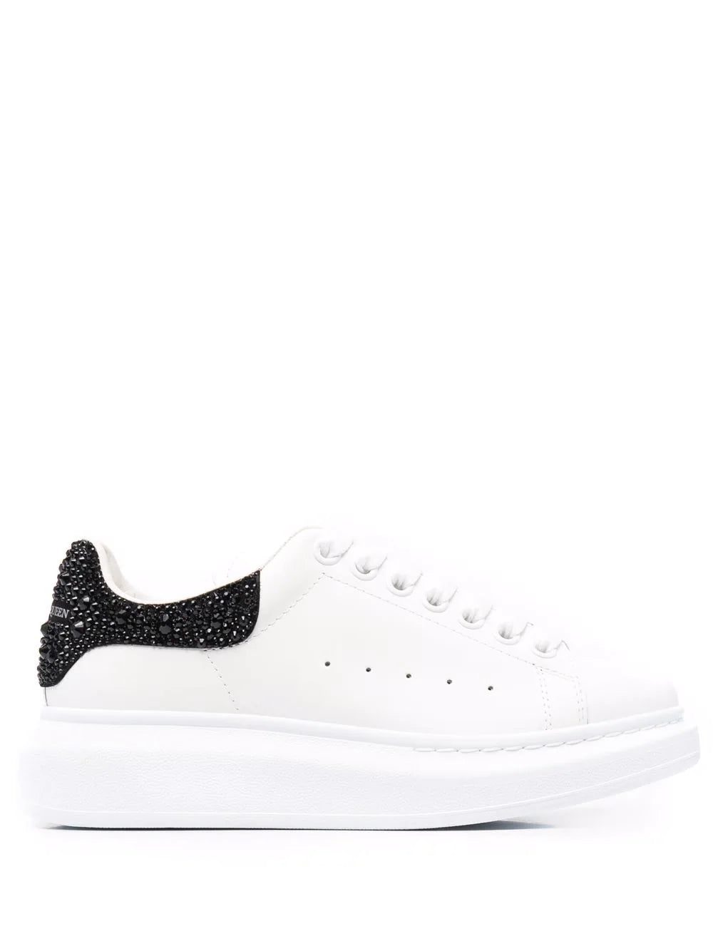 Launched in 2015, the Oversized sneakers are an iconic Alexander McQueen style. For AW21, the signature sneakers are presented with a stud-embellished branded heel counter. In a white hue, these low-top trainers sit atop the oversized rubber sole.