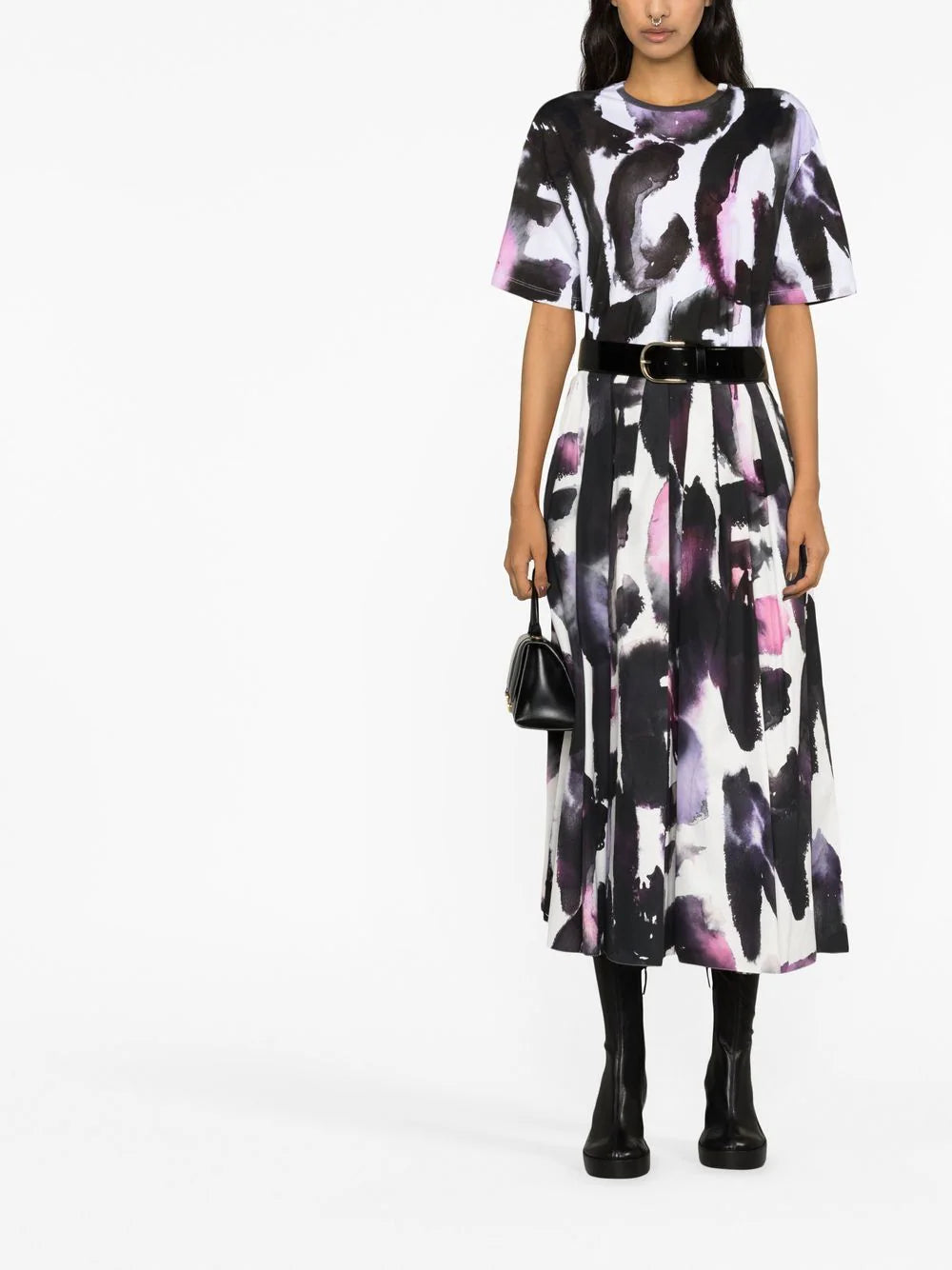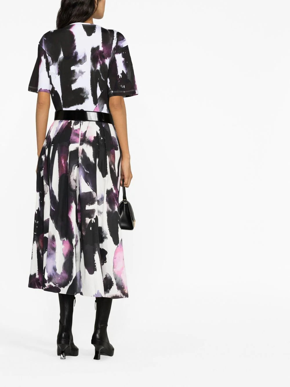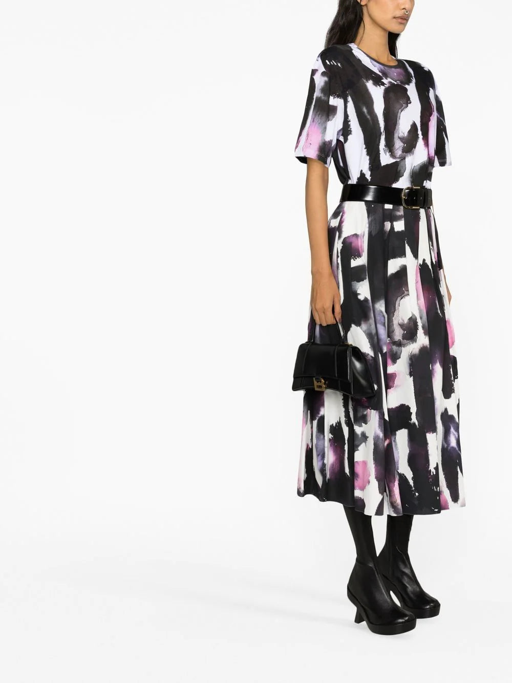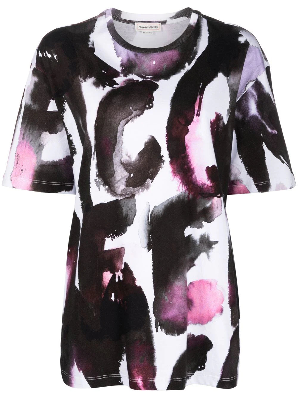 Alexander McQueen brings signature drama to this T-shirt with its painterly black and pink abstract print.