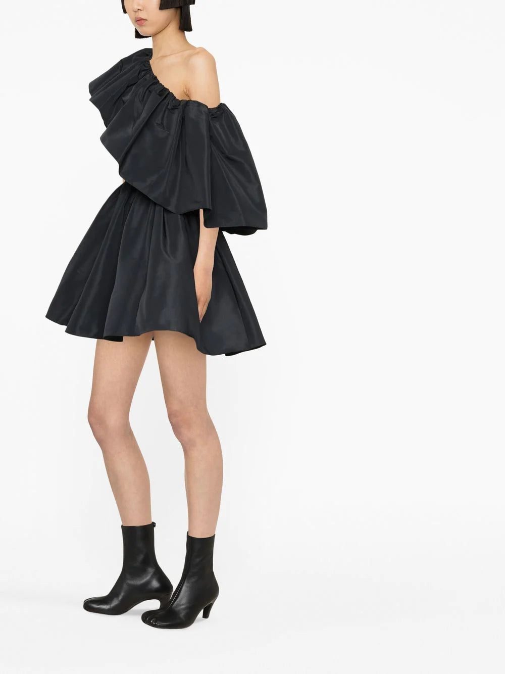 Alexander McQueen displays an eye for voluminous silhouettes with each collection. The British house welcomes pieces like this mini dress, which comes anchored with a contrasting ruffled shoulder for definition.