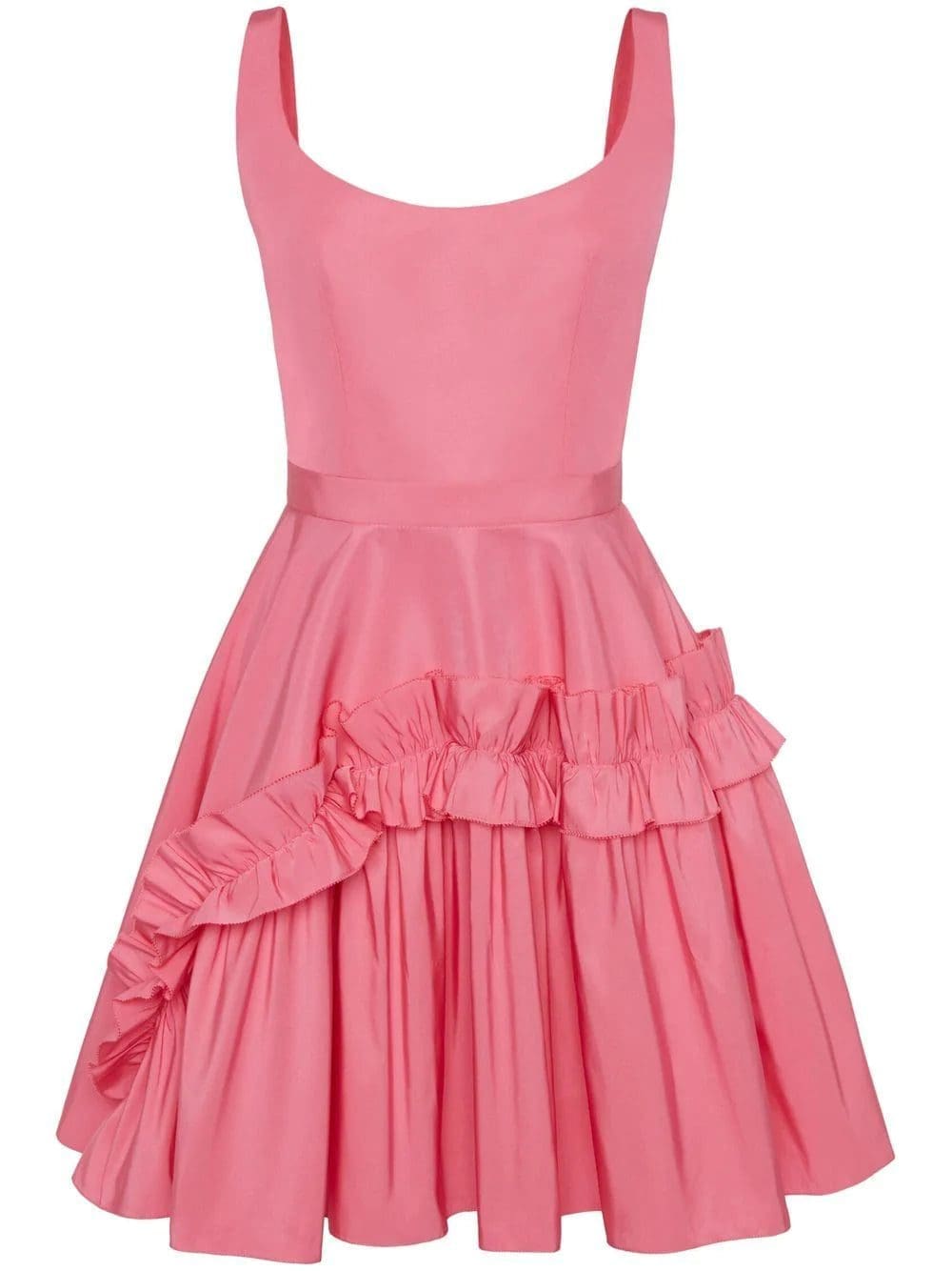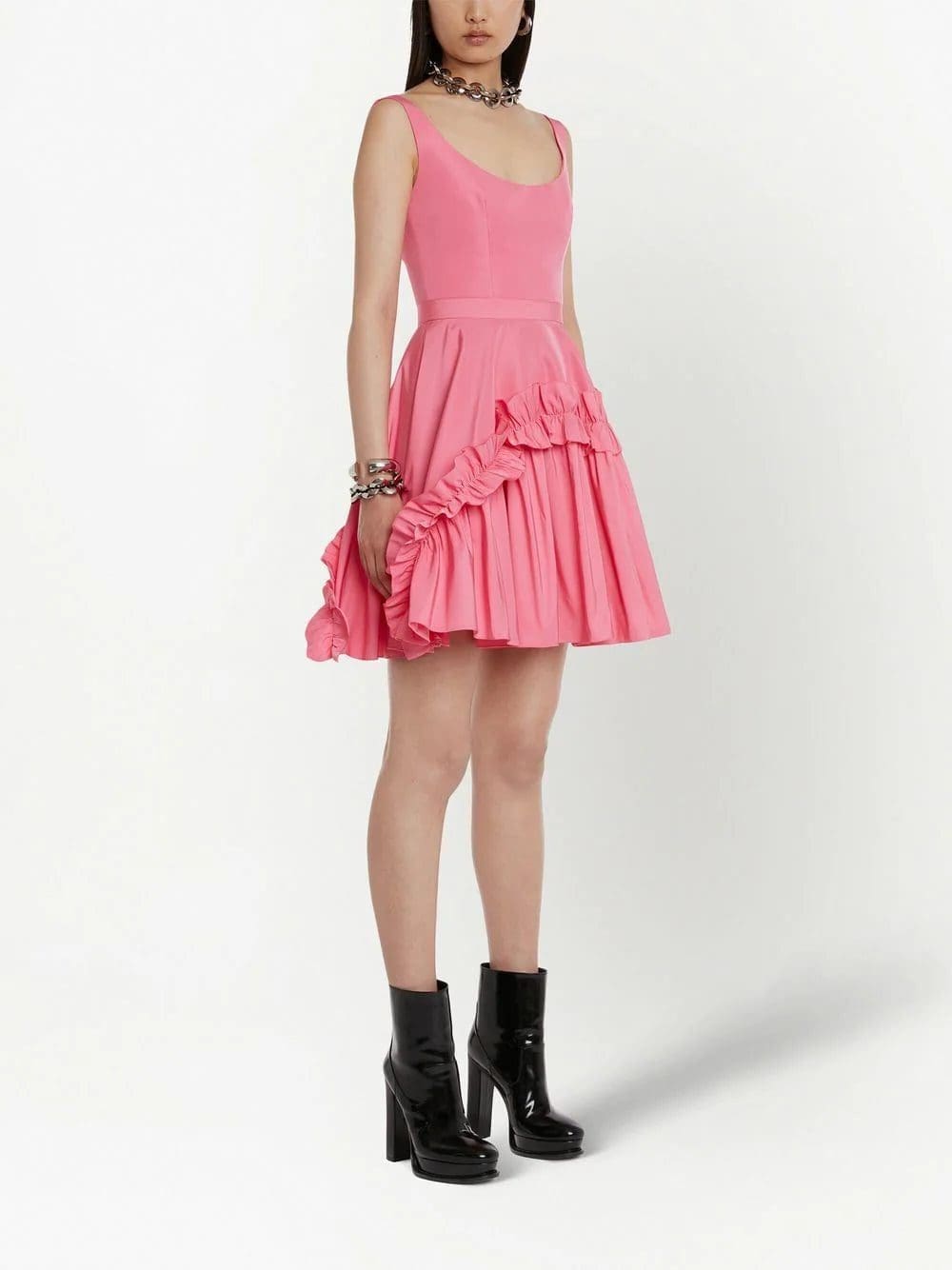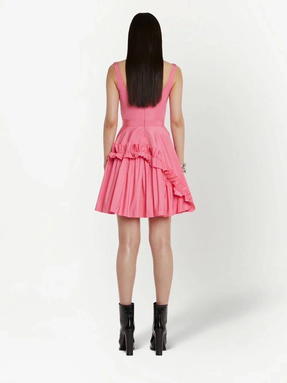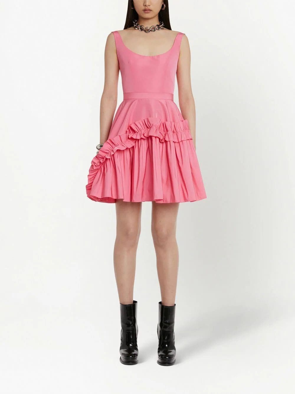 This minidress from Alexander McQueen speaks to the label’s innate romanticism. Realised in a sugar-pink hue, it's defined by a three-dimensional ruffled seam that creates a frothy finish through the skirt.