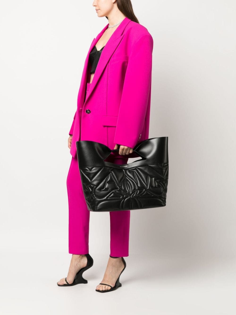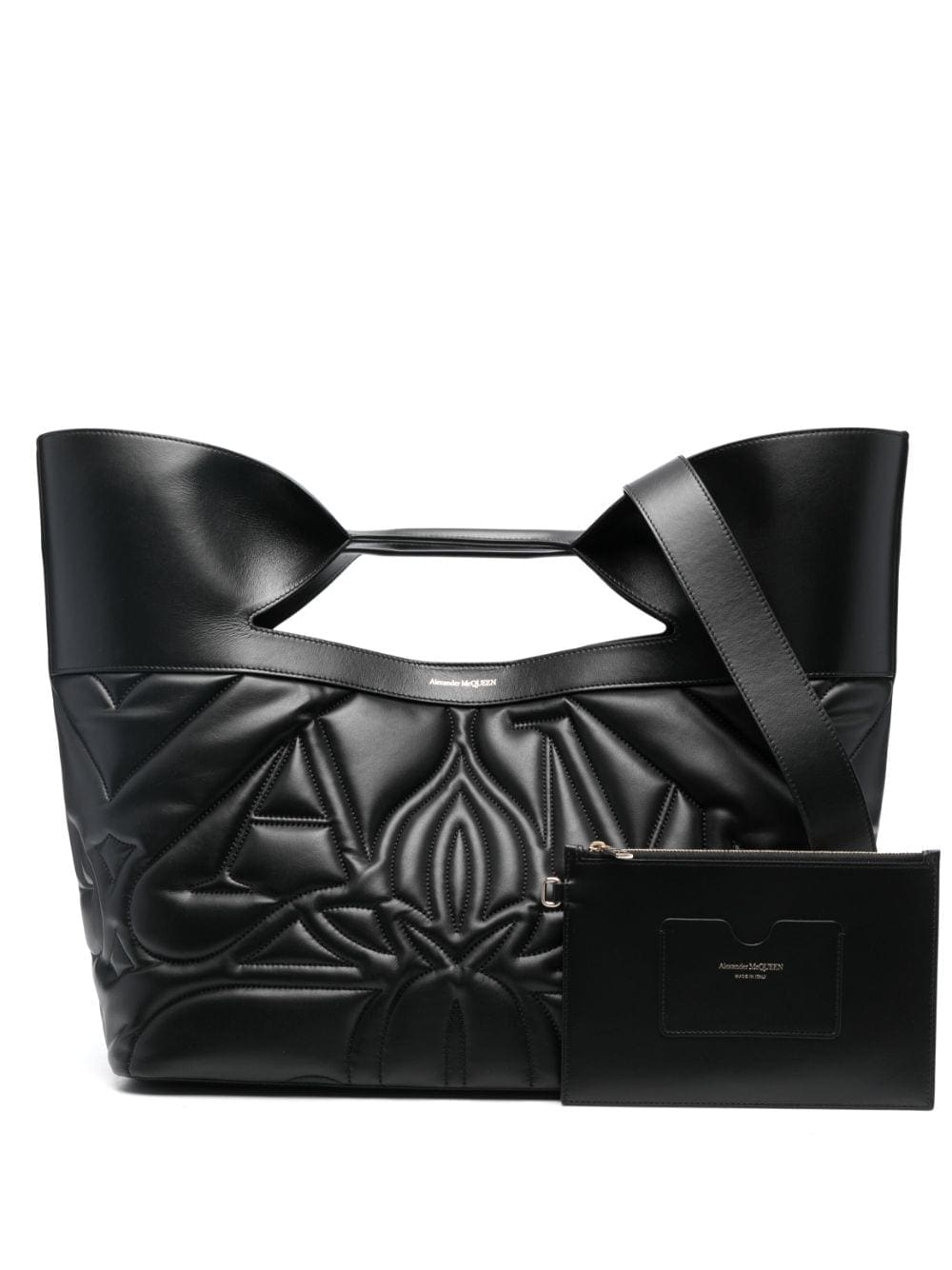 Inspired by the oversized bows adorning Alexander McQueen's latest ready-to-wear collection, arrives this tote bag. The quilting effect give the piece added volume and texture.