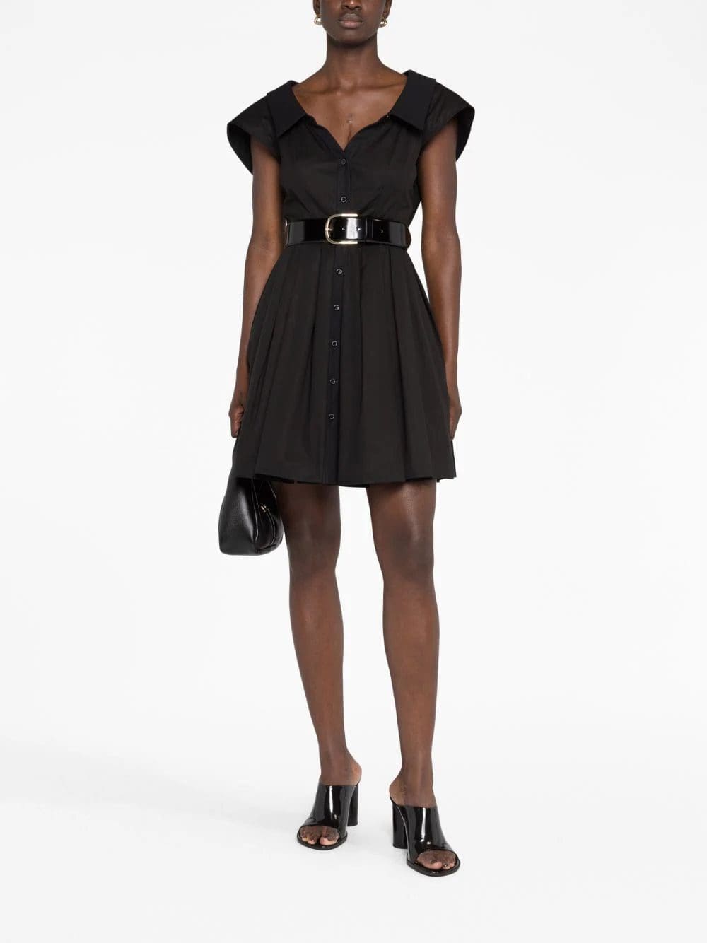 This white Alexander McQueen dress is inspired by '50s shirting. It's crafted from cotton poplin with a polo-style collar and a fitted waist that gives way to a flared, pleated mini skirt.