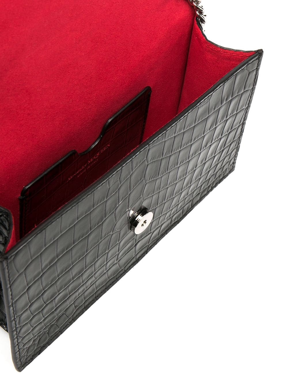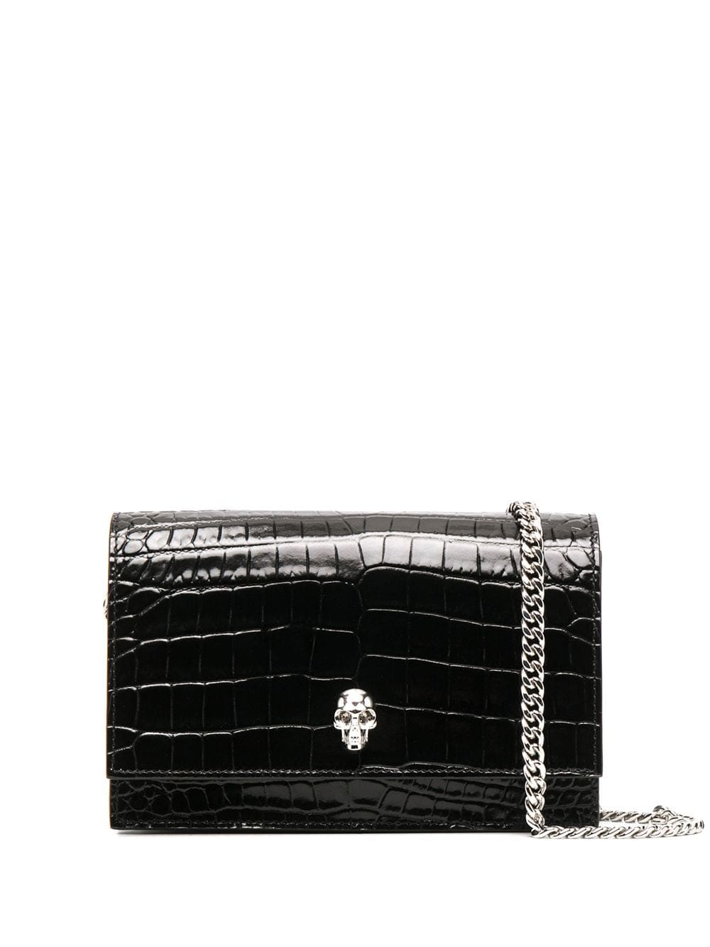 Alexander McQueen's skull motif is a signature detail, displaying the brand's penchant for the macabre. Made from crocodile-effect leather, this clutch bag comes with an optional chain-link strap for hands-free wear.