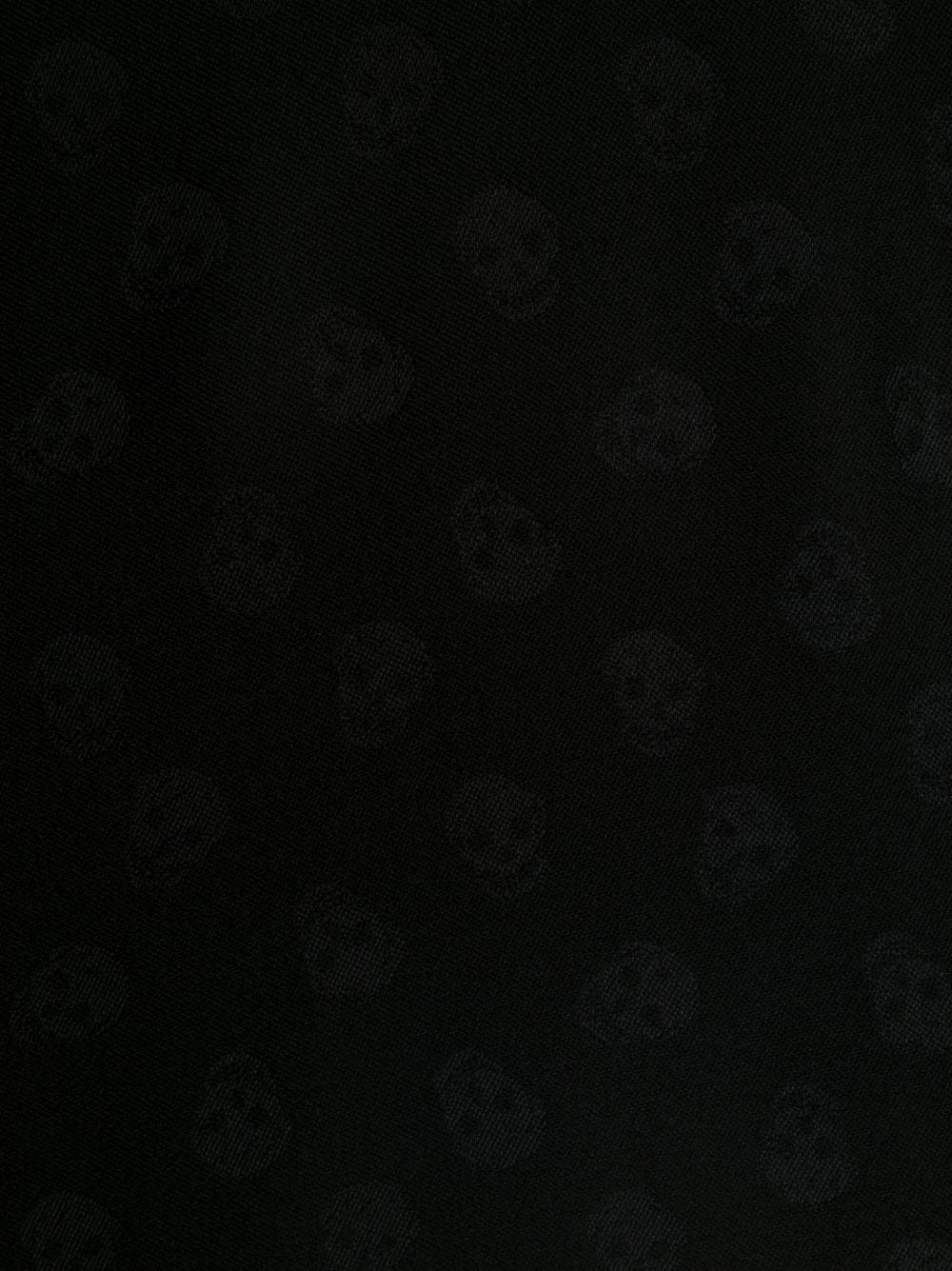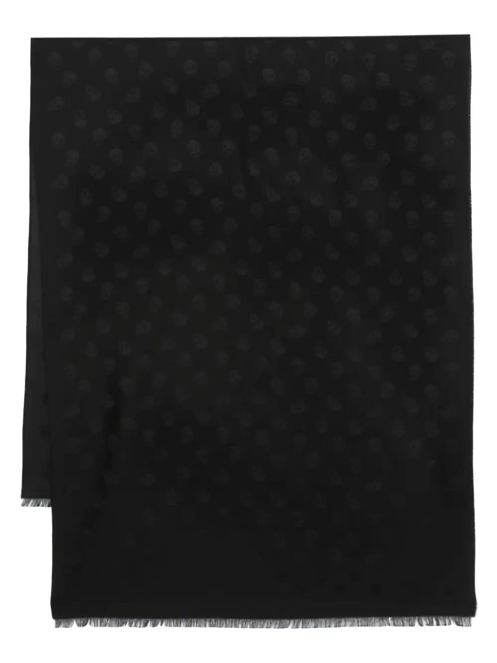 Alexander McQueen's signature skull motif is an instantly recognisable expression of the brand's gothic influences. This scarf, crafted from a wool-silk blend, highlights it in jacquard form against a black backdrop. Fringed edges complete it.