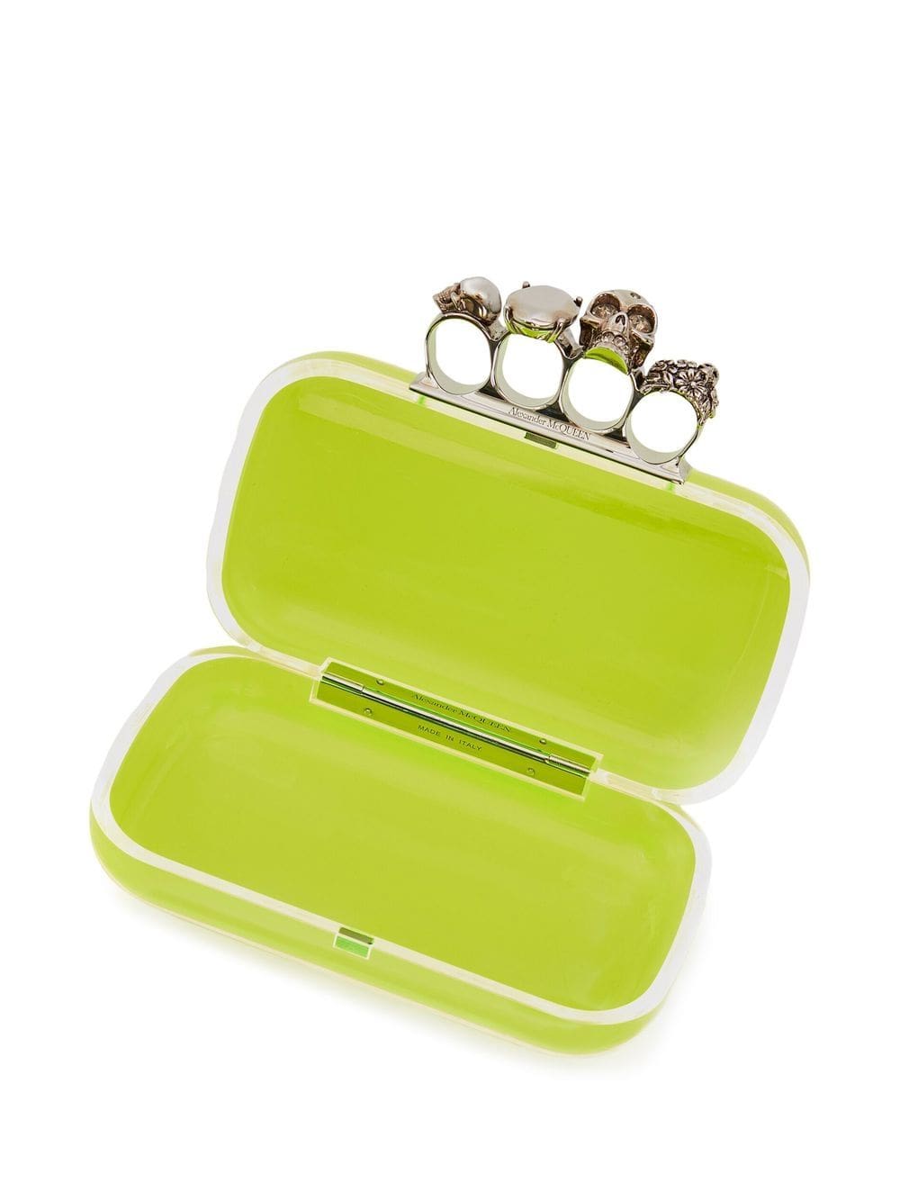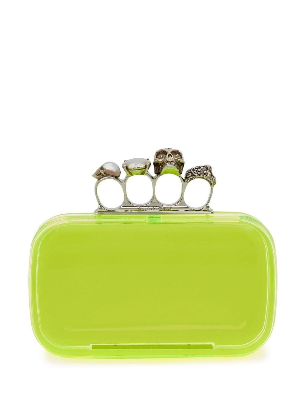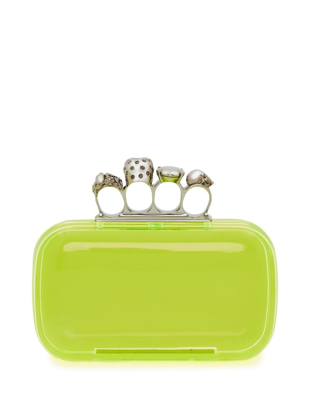 acid yellow high-shine finish knuckleduster design skull stud detailing hinged