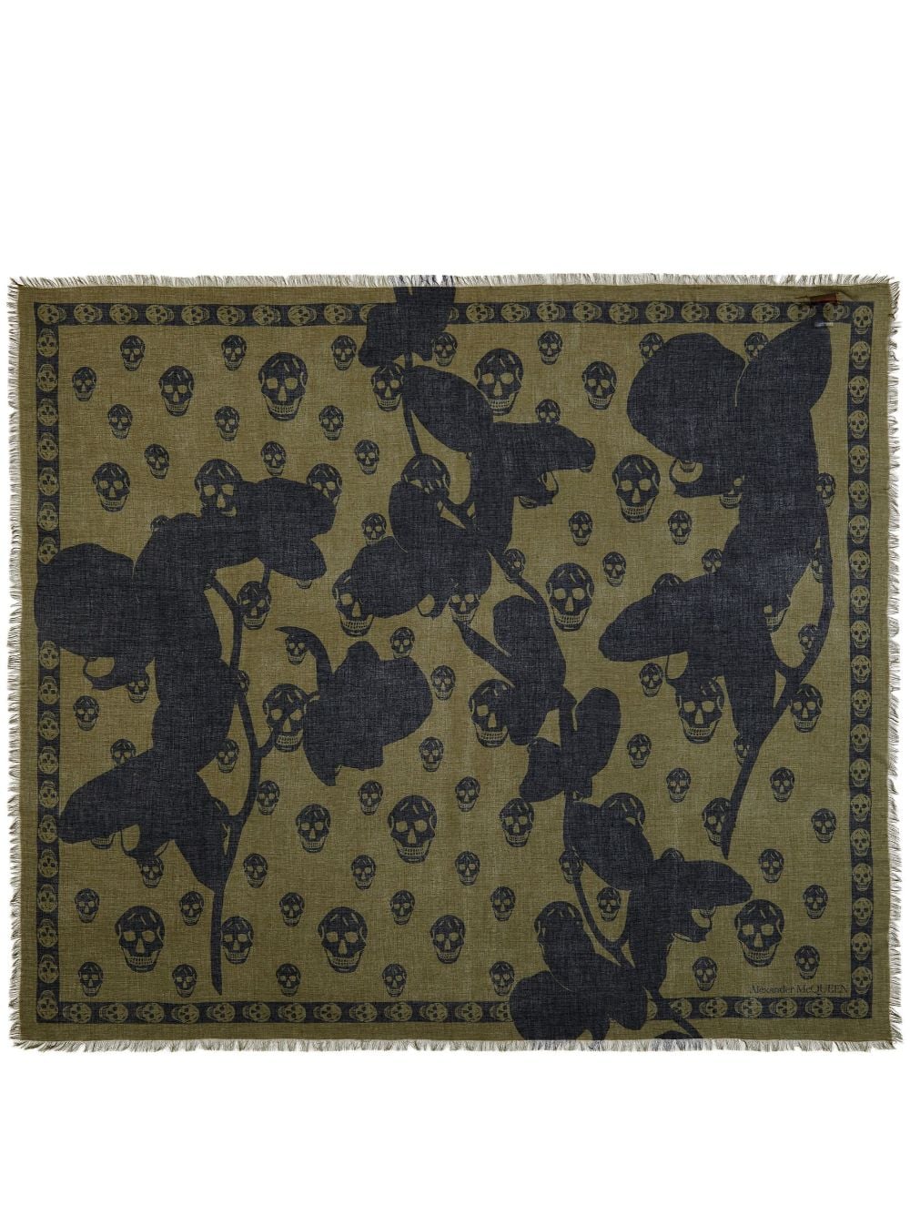 Alexander McQueen skull-print fringed-edge scarf