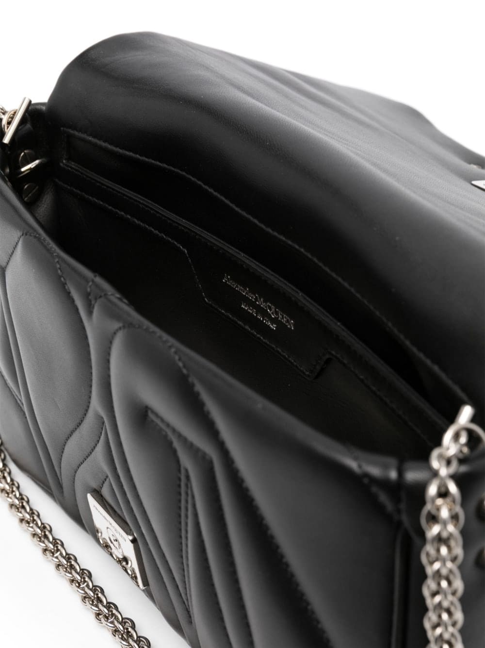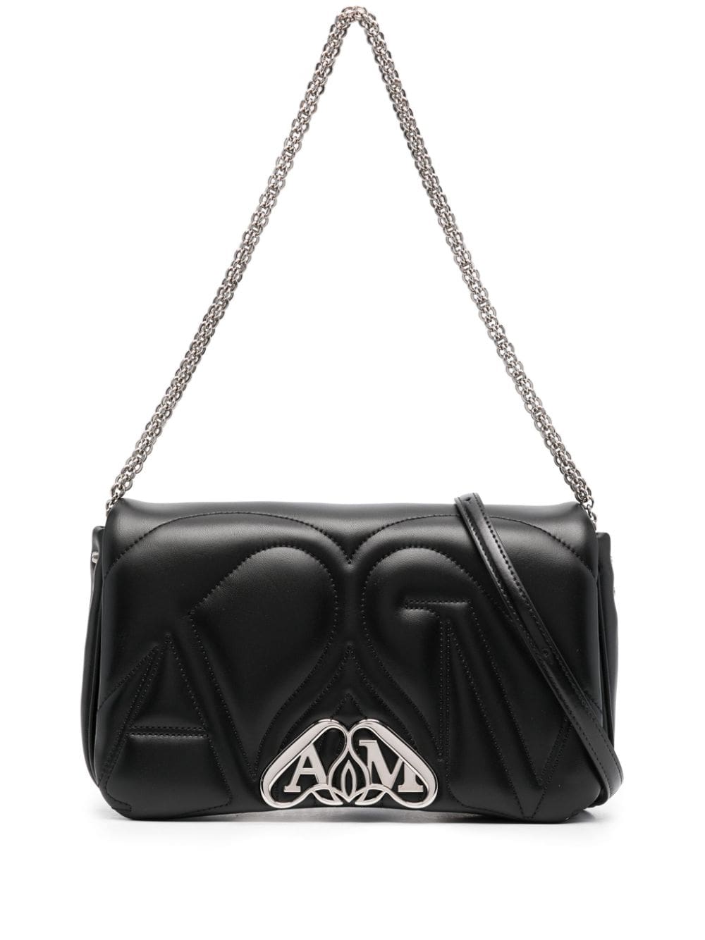 Alexander McQueen infuses this shoulder bag with one of its most famous House Codes: the Seal. Intricately intertwining the British designer's initials, it is seen in a silver-tone plaque and softly quilted into the leather, here in the small iteration of the accessory.