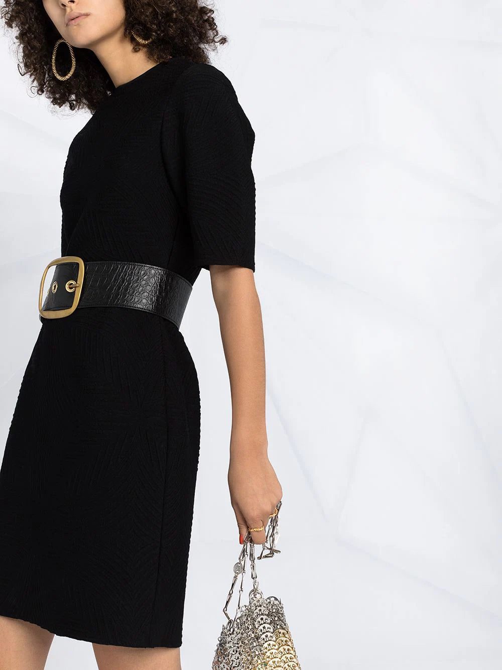 Some people wait all week for their commute back home after a busy Friday. You, on the other hand, are counting down the minutes until the clock strikes five so you can finally pack all your essentials in the clutch you keep at your desk, switch your flats for some killer heels and head straight to the nearest rooftop bar. If you’re looking for company, then this textured half-sleeve mini dress from Alexander McQueen fancies a drink too.