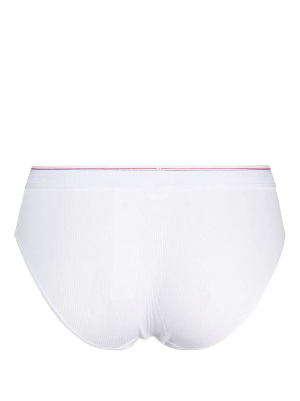 These white briefs from Alexander Wang are a perfect fusion of style and comfort. The white cotton blend is accentuated by a logo waistband and tasteful stripe trim, showcasing the brand's commitment to contemporary design and attention to detail.