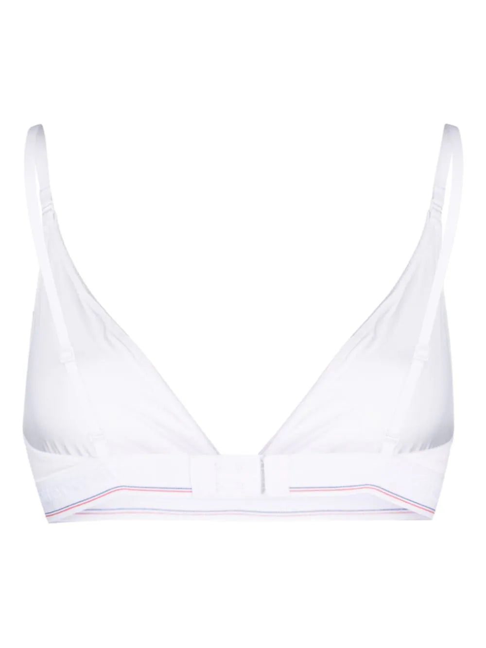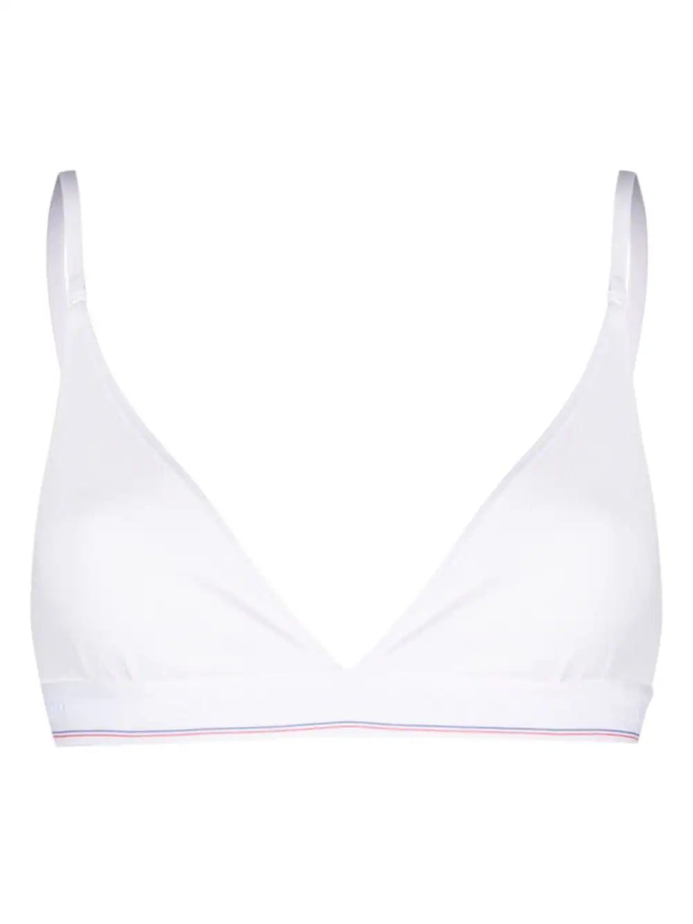 This triangle bralette from Alexander Wang is a perfect fusion of style and comfort. The white stretch cotton is accentuated by a logo jacquard and tasteful stripe trim, showcasing the brand's commitment to contemporary design and attention to detail