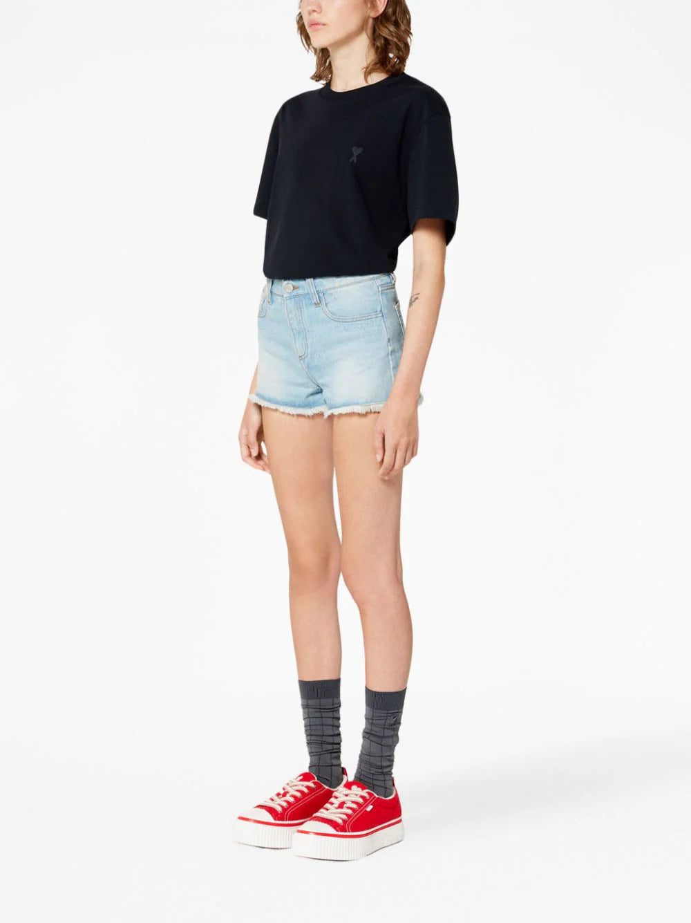 This AMI Paris T-shirt showcases the brand's minimal style. Taken from founder Alexandre Mattiussi's sign-off in letters to friends, the Ami de Coeur motif appears on the chest in a tonal hue.