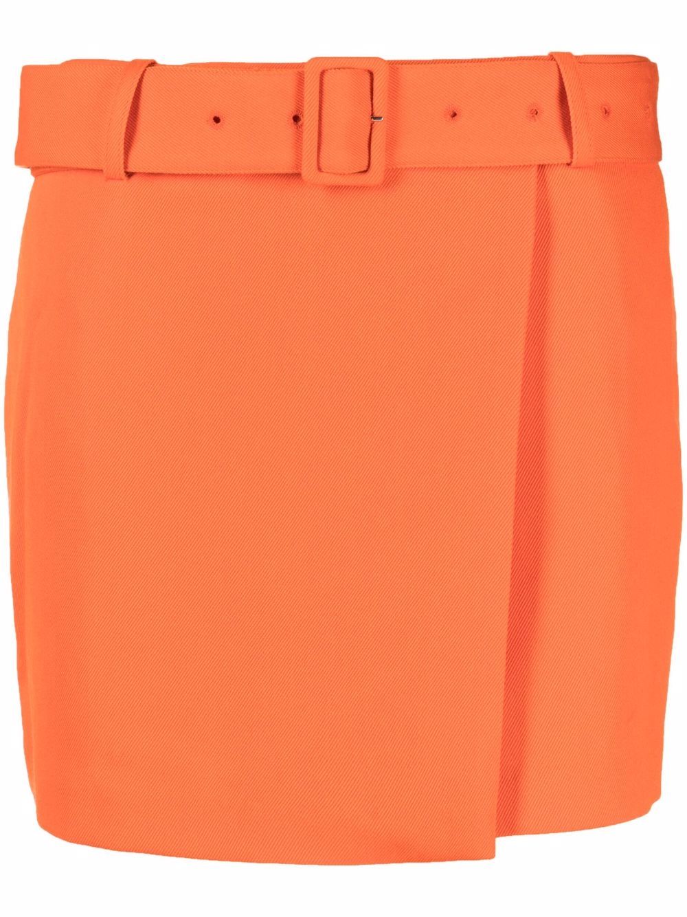 Cut for a straight fit with a bright orange wool construction, this high-waisted miniskirt from AMI Paris is detailed with a belted waist and a straight hem.