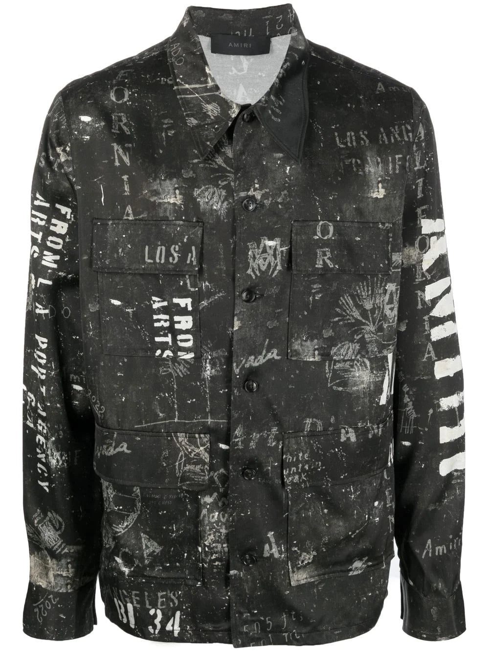 Amiri's streetwear roots are well represented in this satin shirt, which is printed with iterations of the brand's logos and motifs in a faded effect. Four flap pockets at the front add a utilitarian look.