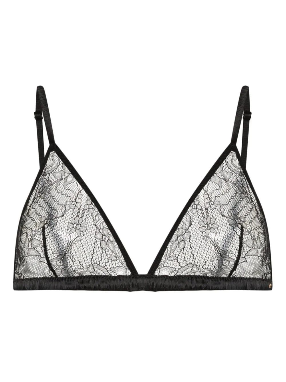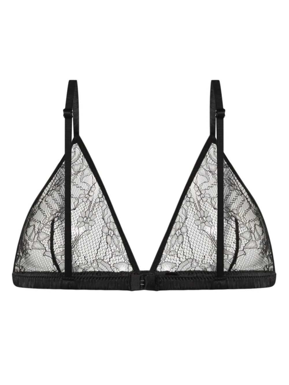 ANINE BING's black Maddy bralette is cut from sheer and delicate floral lace with soft triangle cups and ruched satin trims at the underband and adjustable straps.
