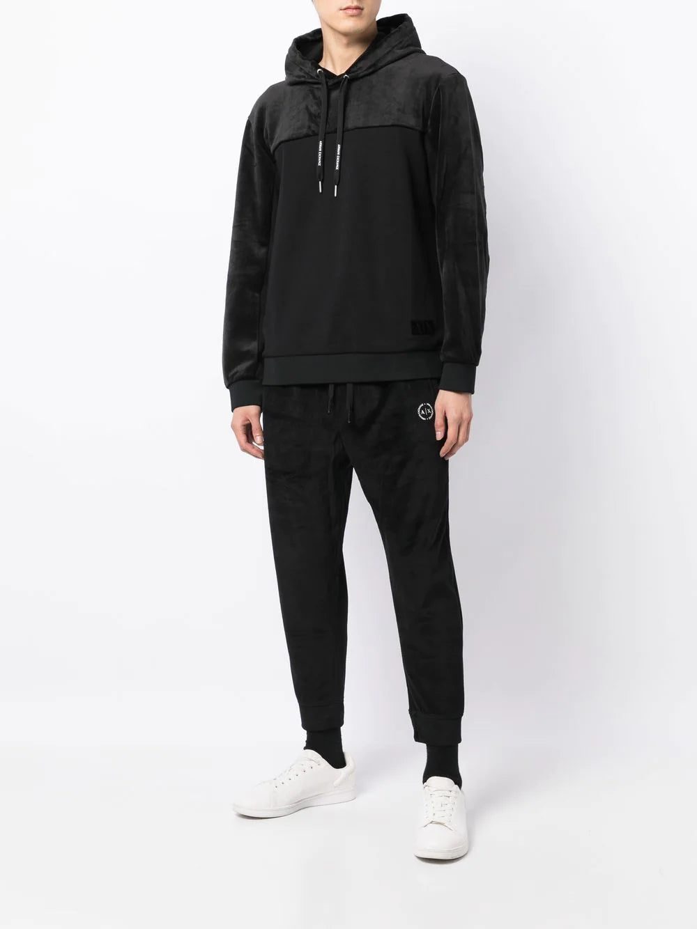 jersey track pants from ARMANI EXCHANGE featuring black, cotton blend, jersey knit, elasticated waistband and elasticated ankles.