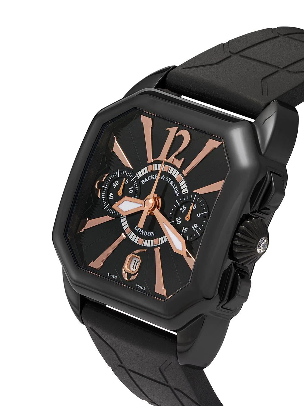 Since its founding in 1789, London-based Backes & Strauss showcases its conception of the ultimate timepiece, drawing heavily on traditional English heritage with high-quality designs. Crafted in Switzerland from black stainless steel, the Berkeley Chronograph 40mm is a stunning example of the brand’s aesthetic, boasting a smooth square face. It is powered by a quartz movement with a black dial with hand-polished Roman Numerals and fastens with a leather strap and buckle fastening. This item comes with a standard 2-year international warranty from the brand.