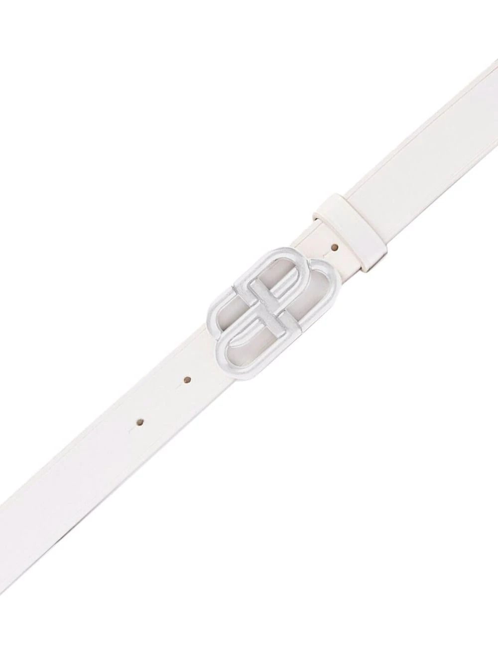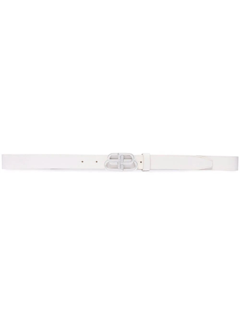 It is no surprise that anything Balenciaga conjures up rises to cult status. This season, expect more iconic bags, contemporary footwear with a retro feel and logo-sprawled surfaces, as seen in this white leather BB buckle belt. Featuring a bar pin fastening, an adjustable fit, a square tip and antique effect gold-tone hardware.