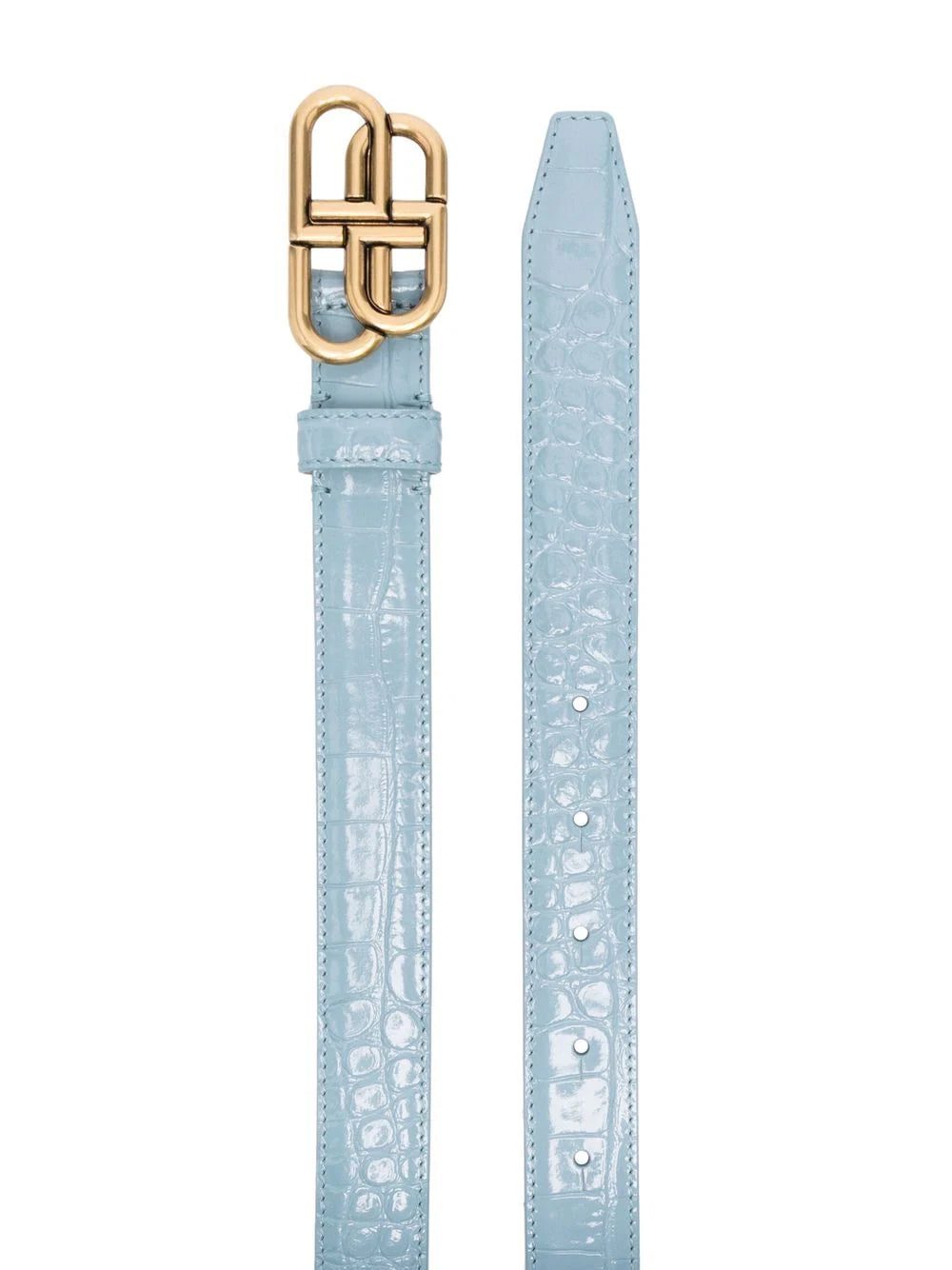Punctuated by an iconic double B logo buckle, this thin belt carries Balenciaga’s sense of distinctive refinement. Crafted in Italy from smooth leather, this accessory boasts an embossed crocodile-effect surface for added appeal.