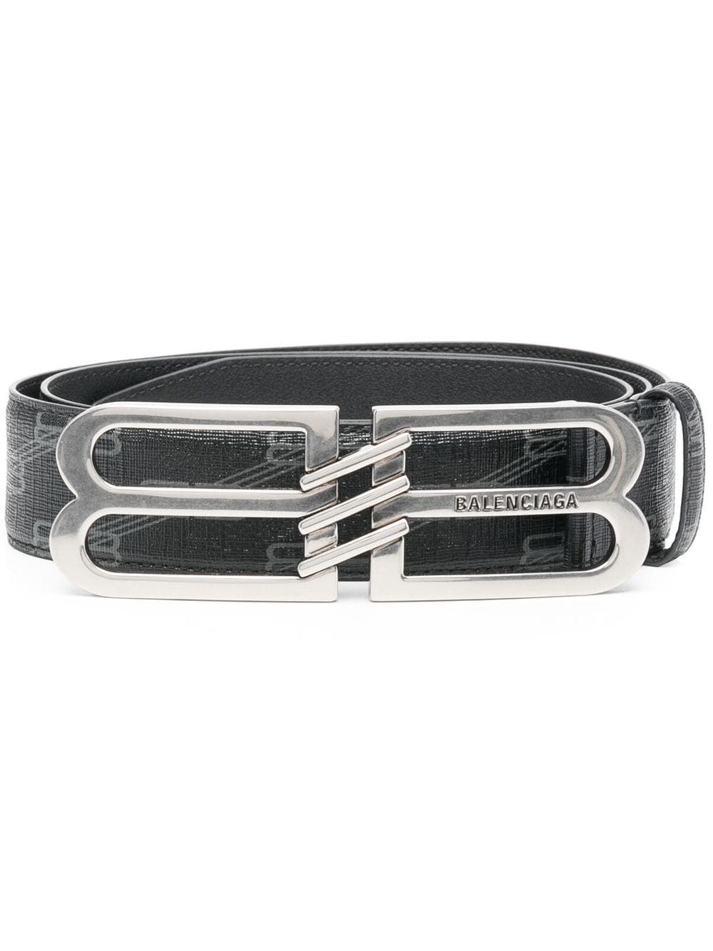 BB logo buckle belt from BALENCIAGA featuring black, calf leather, logo buckle fastening, silver-tone hardware and adjustable fit. Conscious: We've partnered with Good On You – an ethical agency that rates how sustainably brands perform. This item comes from a brand that performs well in relation to their impact on the planet..