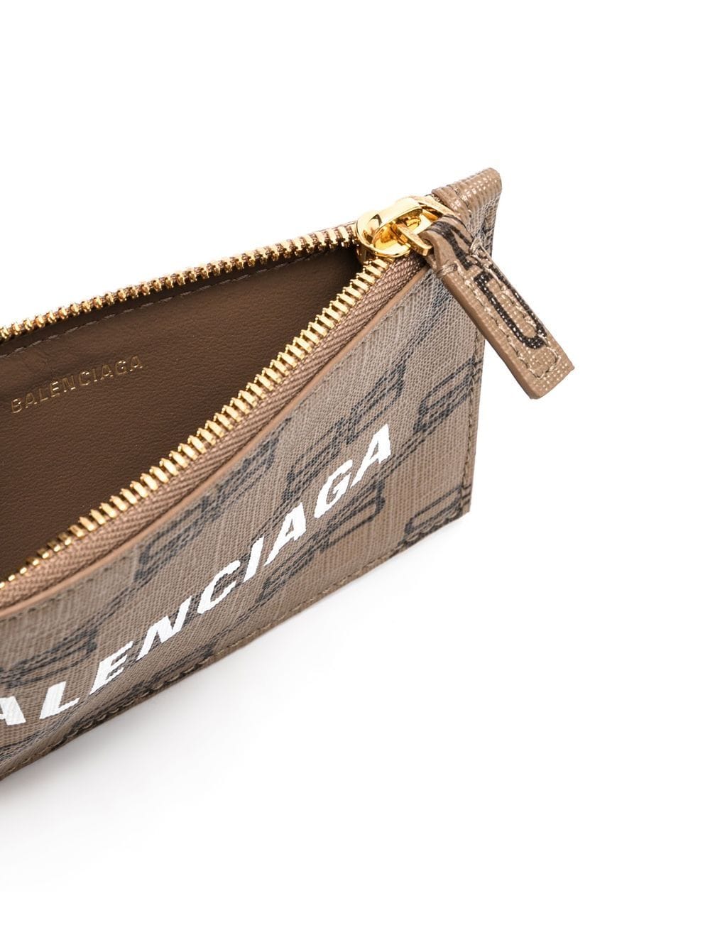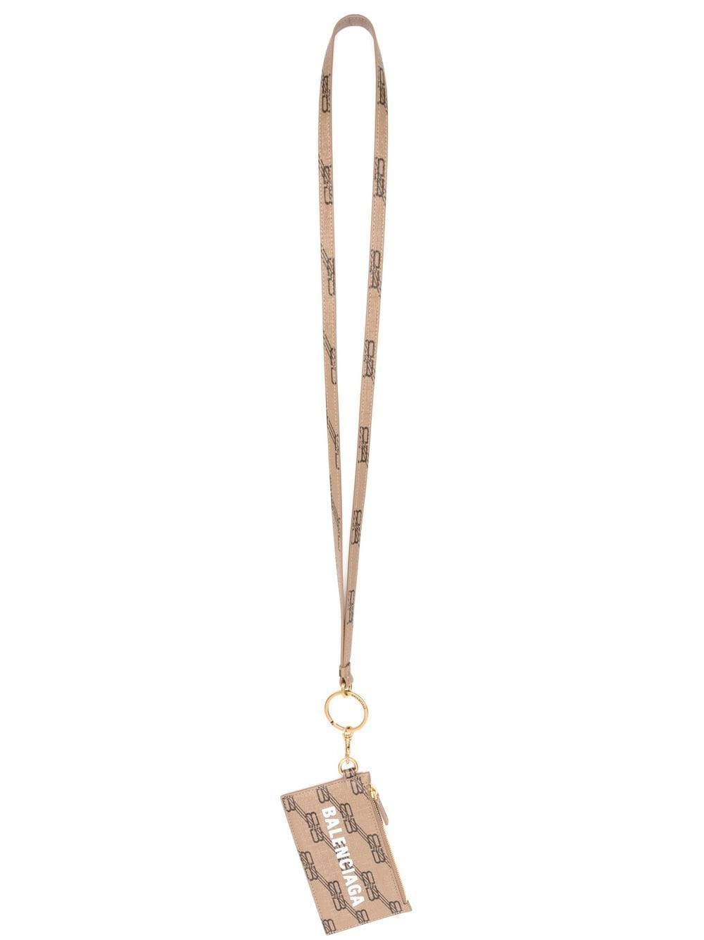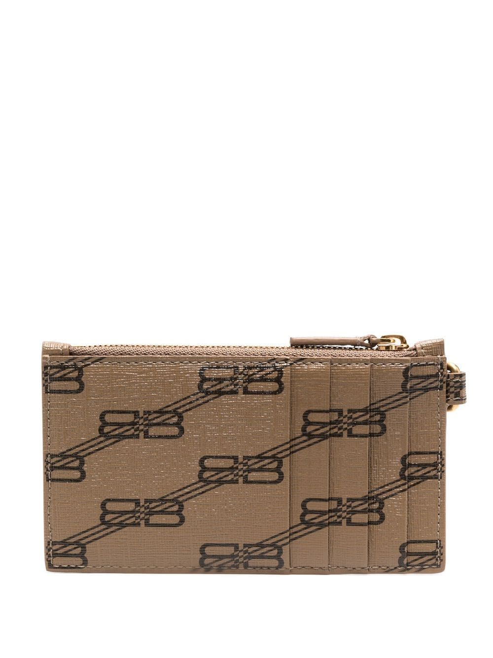 BB logo-print wallet from BALENCIAGA featuring calf leather, BB print, logo print to the front, internal logo stamp, top zip fastening, detachable neck strap, main compartment and beige/brown. POSITIVELY CONSCIOUS: We've partnered with Good On You — an ethical agency that rates how sustainably brands perform across various people, planet and animal welfare criteria. This product comes from a Conscious brand that performs well in relation to their impact on the planet, for example ensures the use of materials that limit the amount of chemicals, water and wastewater involved in production processes..