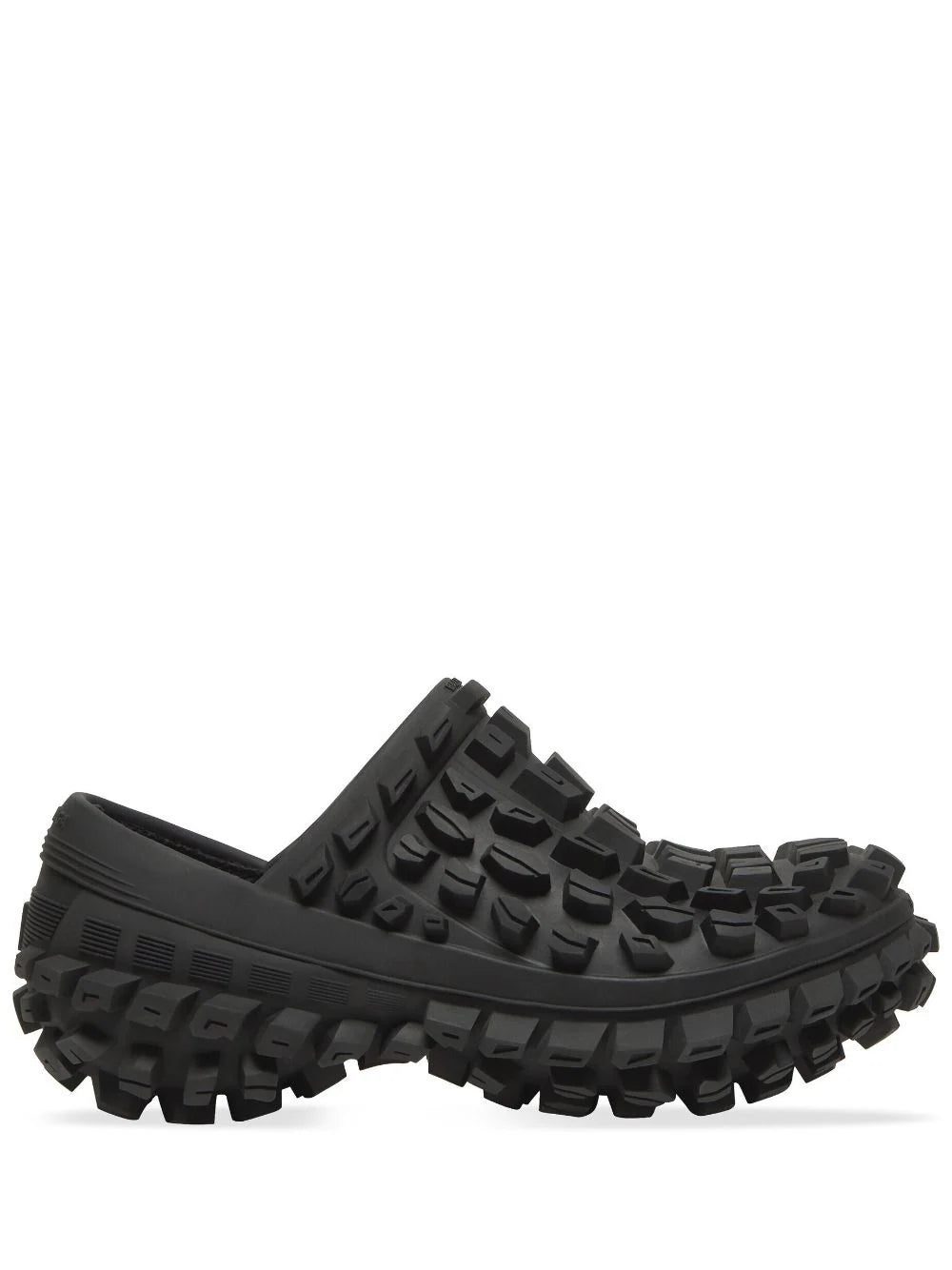 Balenciaga offers contemporary style with these Bouncer clogs. In classic black, it is crafted with an all-over tread detailing for modern opulence.