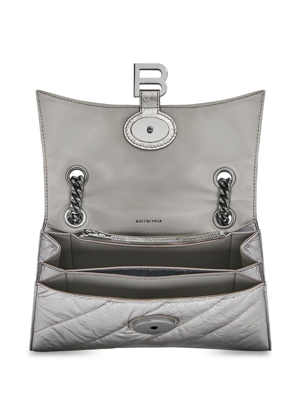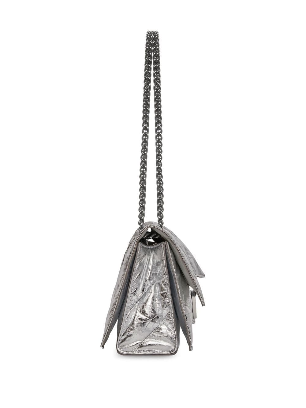 A new addition to Balenciaga's bag edit, the Crush Bag is defined by its curved shape and quilted finish. Held by a sliding chain strap, it is completed with the iconic B logo plaque on the front.