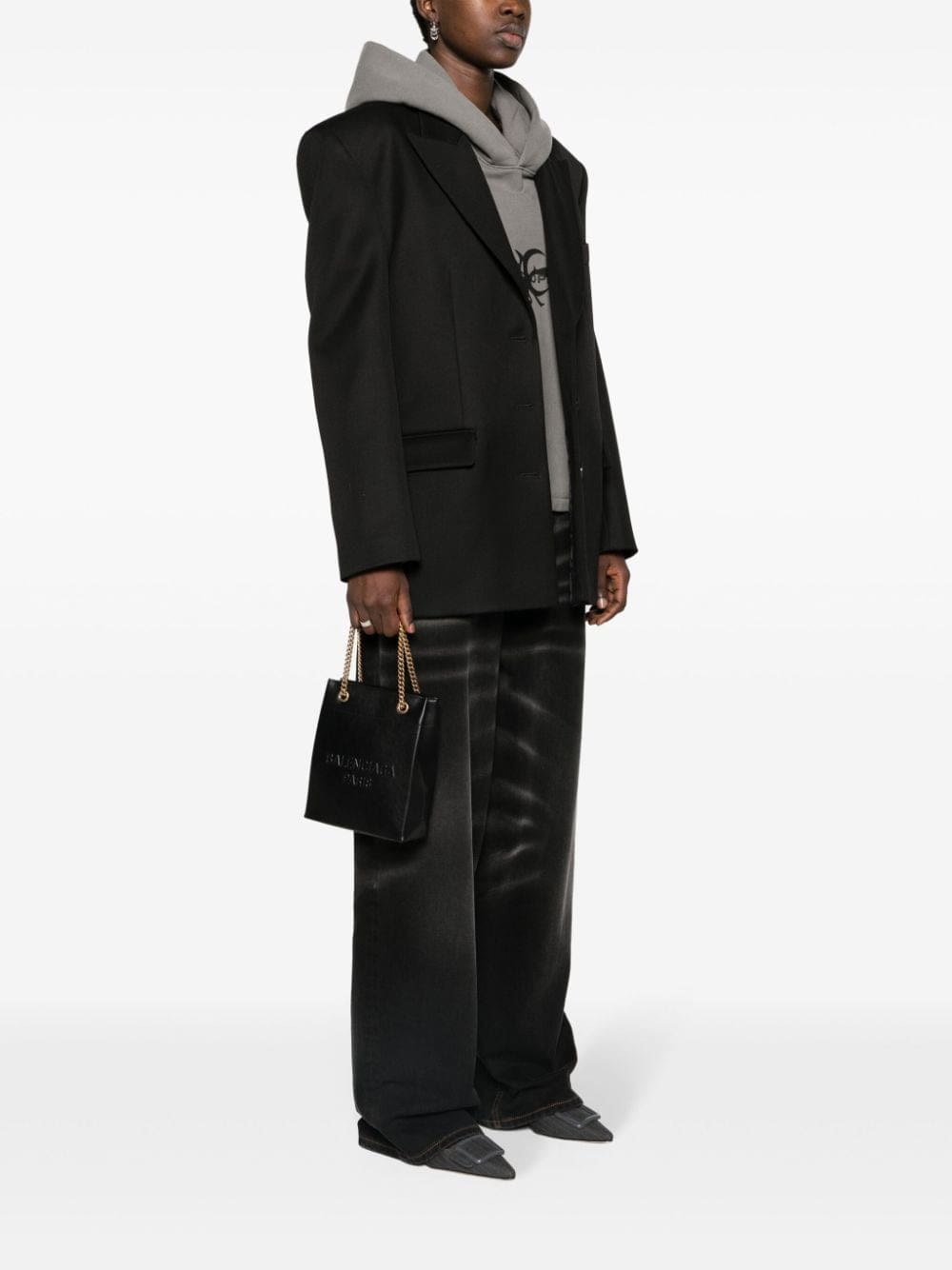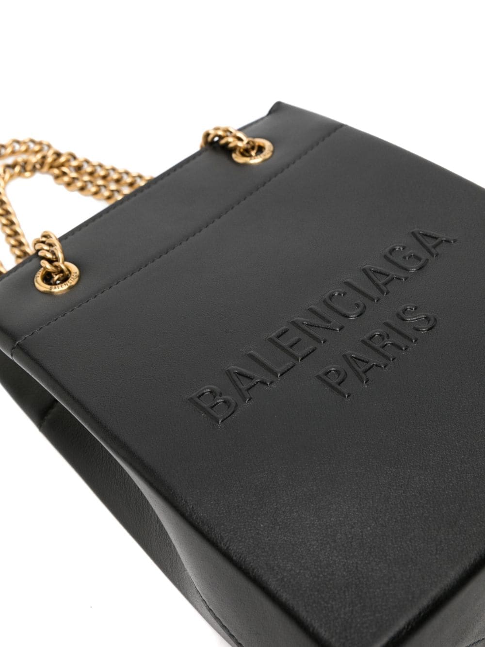 Boasting a sleek structured silhouette, the Balenciaga Duty Free tote bag is embossed with the signature logo across the front. It's secured with bold gold-toned chain top handles.